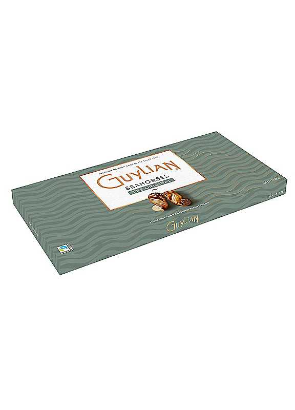 Guylian Seahorses 336g gift box. 44 marbled chocolate seashells.Milk, white, and dark Belgian chocolates made by Guylian Master Chocolatiers.Filled with Signature hazelnut praline, made with hazelnuts roasted in copper kettles.Vegetarian, palm oil free, Kosher certified.Packaging 100% recyclable.Belgian chocolate classic that's perfect for gifting or indulging. For ingredients information click here