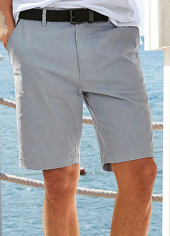Classic chino shorts for men by HIS Timeless shape with straight legs. Regular rise and elastic waistband. Comfortable cut thanks to regular fit. Perfect fit thanks to elastic cotton. Without belt. Brand: H.I.S Straight leg Normal rise Regular fit Without belt Elasticated waistband Button & zip closure Knee free Machine washable 98% Cotton, 2% Elastane