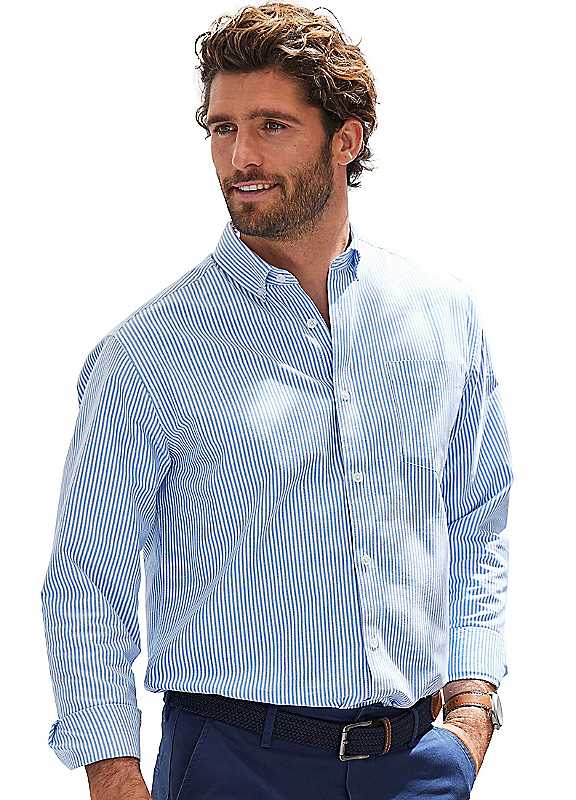 Elevate your wardrobe with the timeless style of H.I.S with our Long-Sleeved Shirt. Perfect for any occasion, this menswear essential features a sophisticated striped design that will make a statement wherever you go. The long sleeves provide both comfort and versatility, while the button-down collar adds a touch of refinement to your look. Complete with a convenient chest pocket, this shirt effortlessly combines fashion and functionality. Crafted with precision and attention to detail, the Stripes on our Long-Sleeved Shirt are a testament to the quality of the H.I.S brand. Upgrade your collection with this must-have Collar shirt today.Brand: H.I.SStriped designLong sleevesButton-down collarChest pocketMachine washable100% Cotton