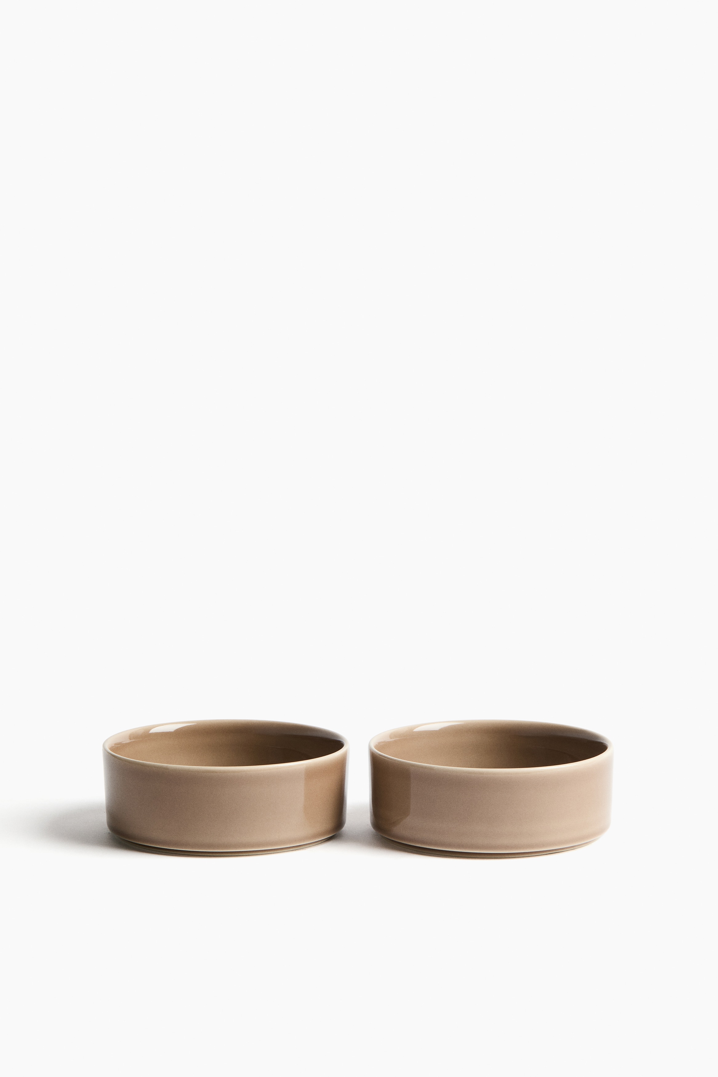Two small bowls in stoneware featuring a glossy finish.