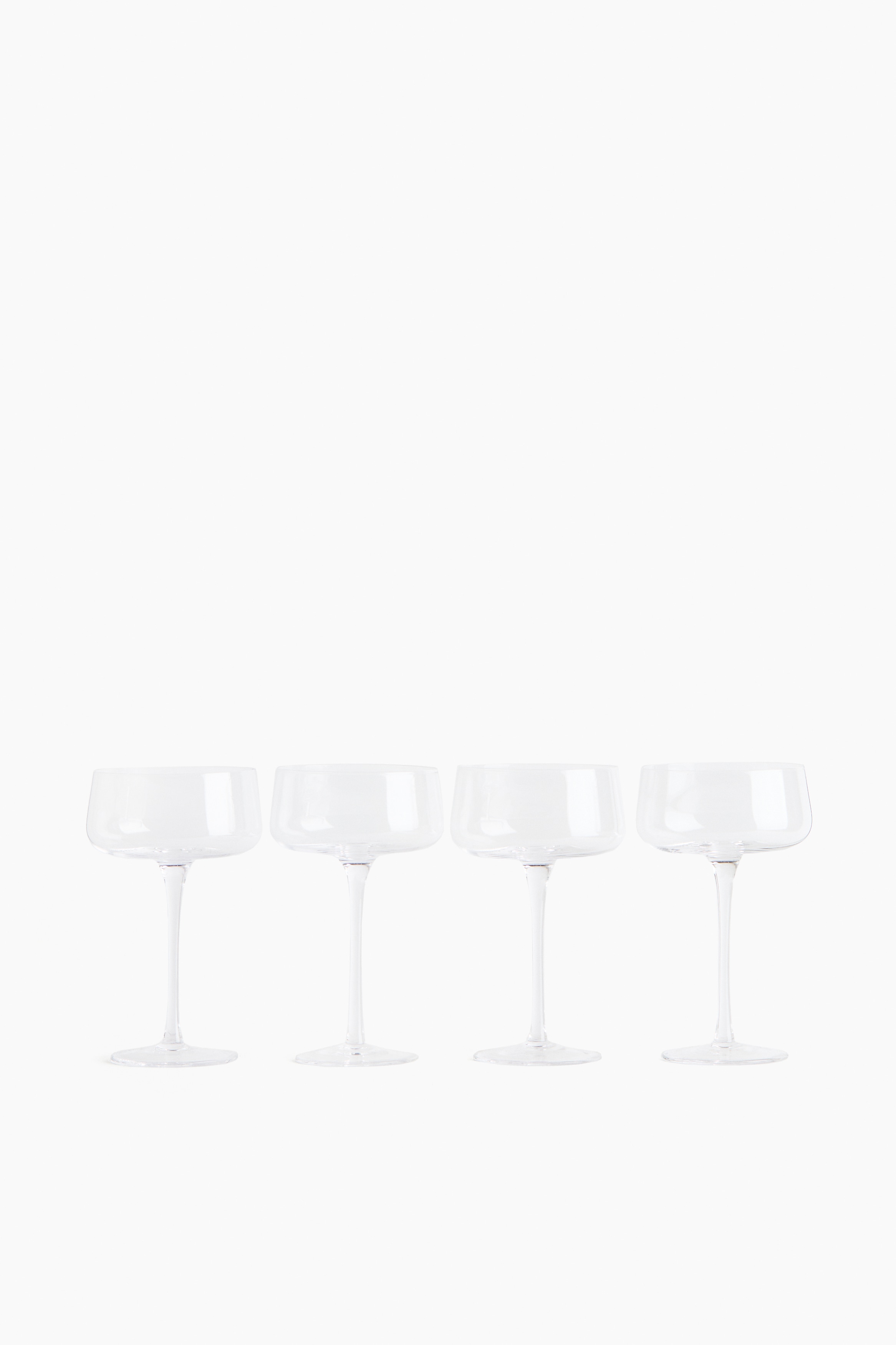 Tall, stemmed coupe glasses for drinks or desserts. Capacity 250 ml.