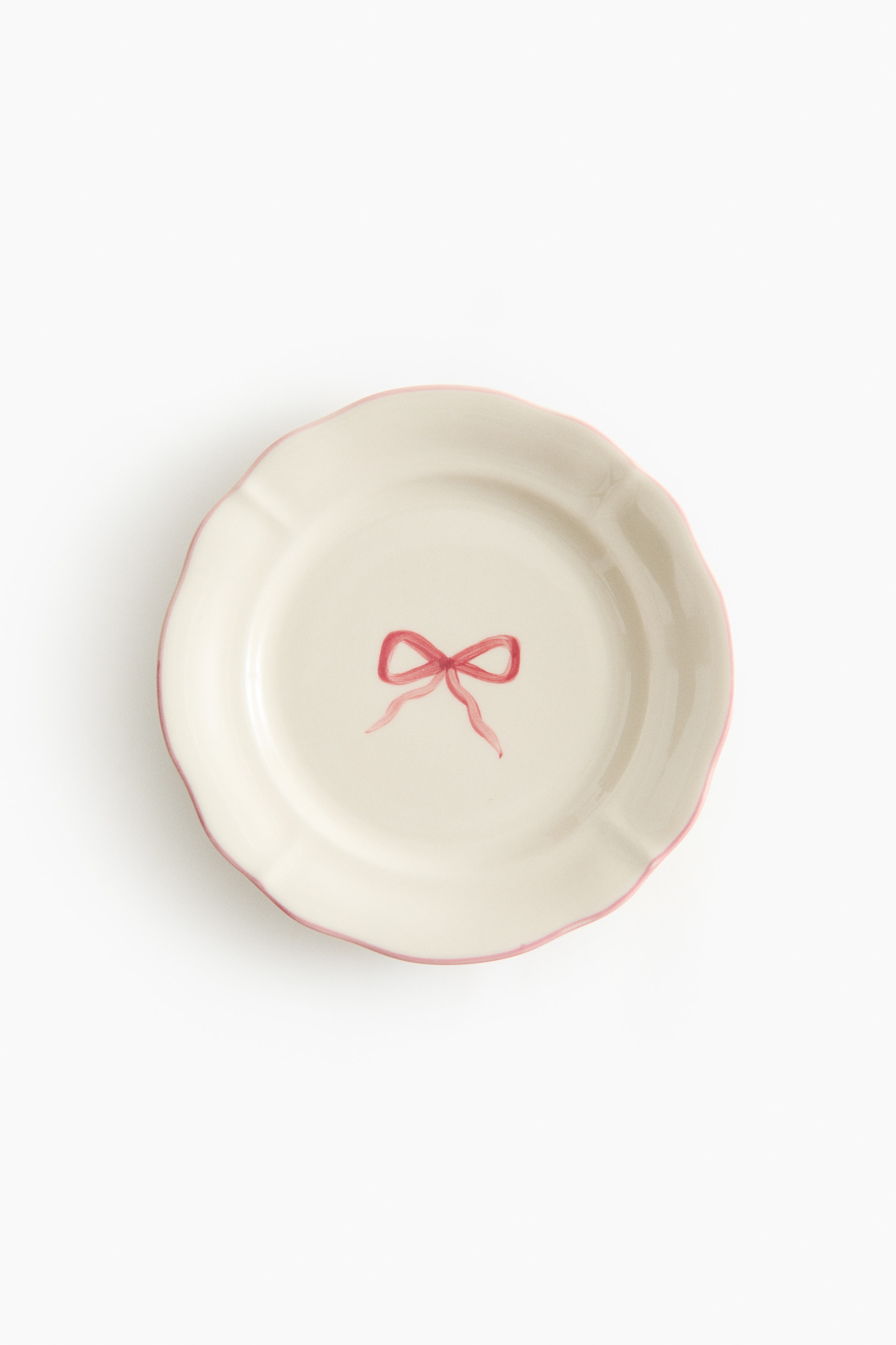 H&M Home - Hand-painted stoneware starter plate - Light beige/Bow