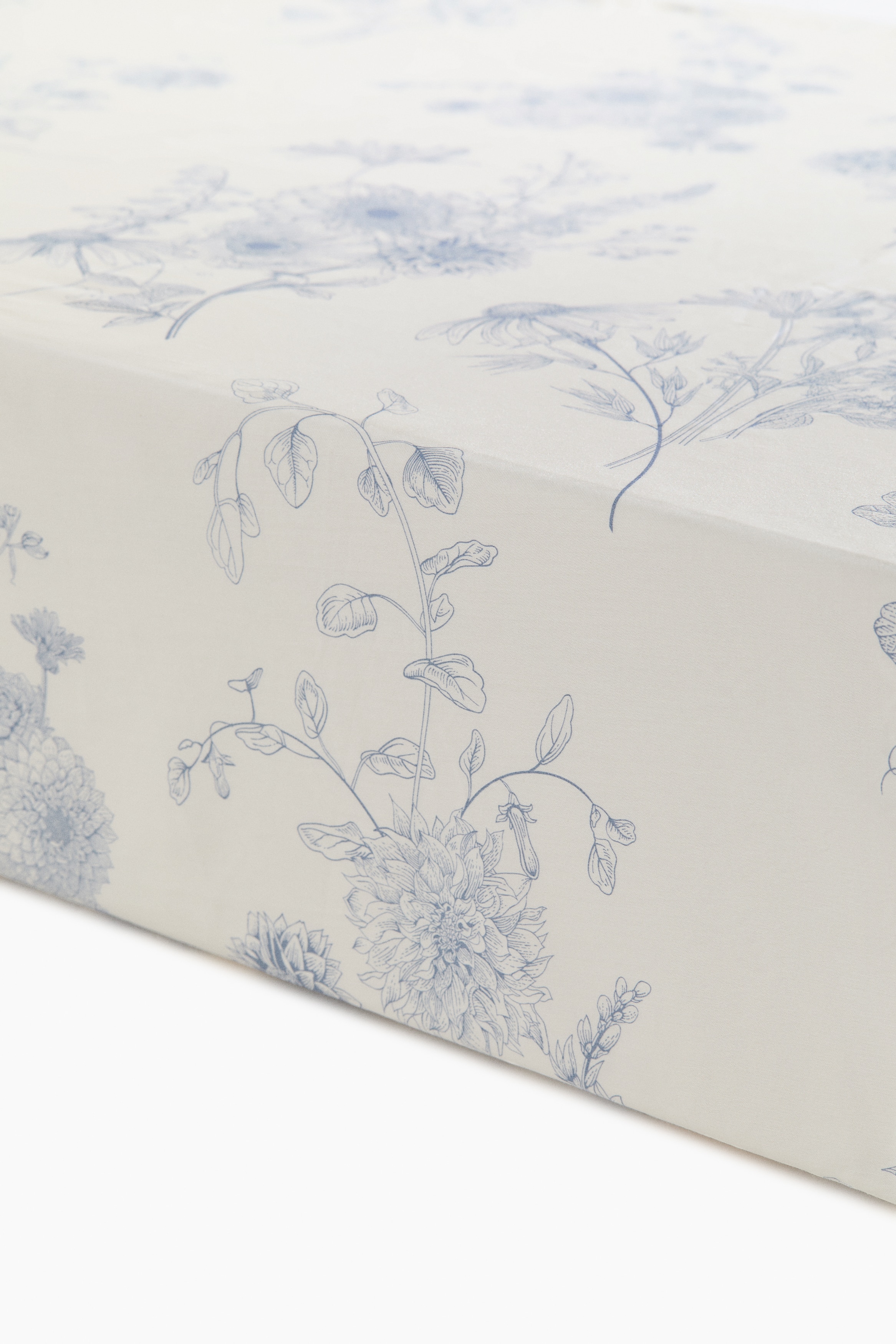 Patterned fitted sheet in cotton satin with a thread count of 210.