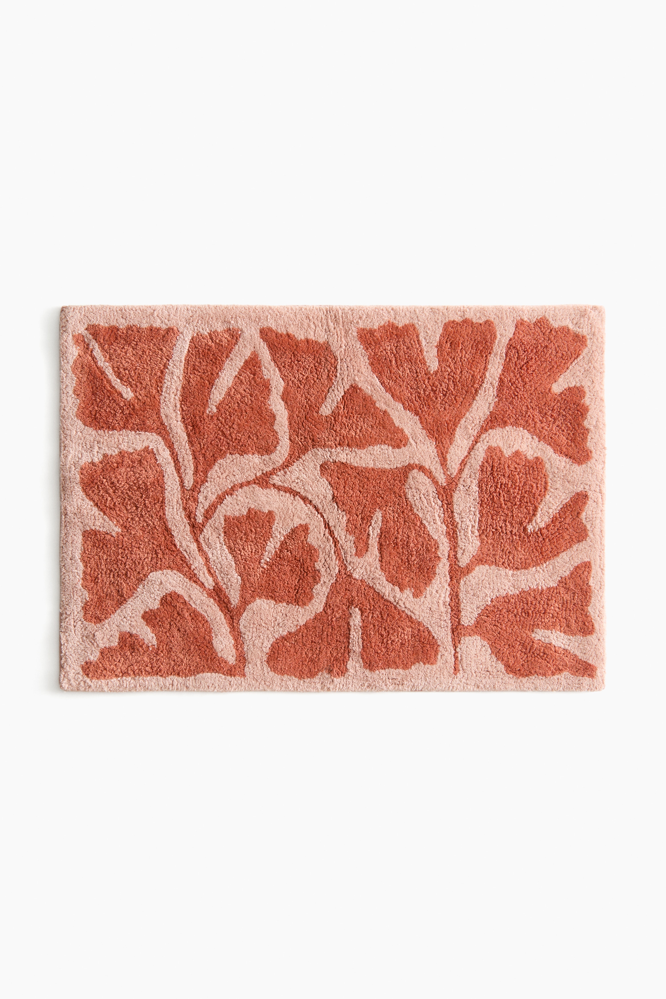 H&M Home - Tufted cotton bath mat - Rust red/Floral - size: 50x70
