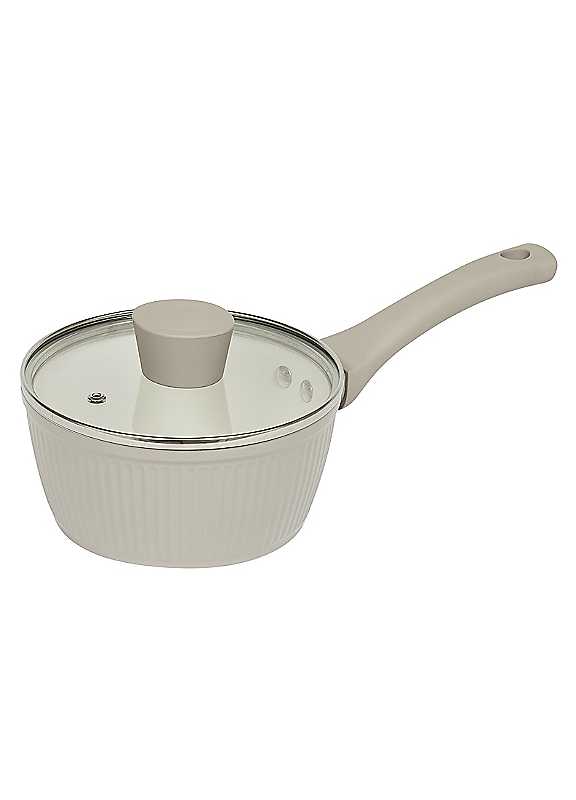 Designed for everyday ease, this saucepan makes light work of home cooking. Whether you're warming sauces, preparing grains or reheating soups. The soft touch handles and white ceramic interior are a joy to use and clean.Ceramic non-stick interiorGlass saucepan lids with steam ventsSoft-touch Bakelite handlesHeat-resistant painted bodyEasy to clean & storeRibbed texture designDimensions approx. 7.5 x 16 x 33 cm