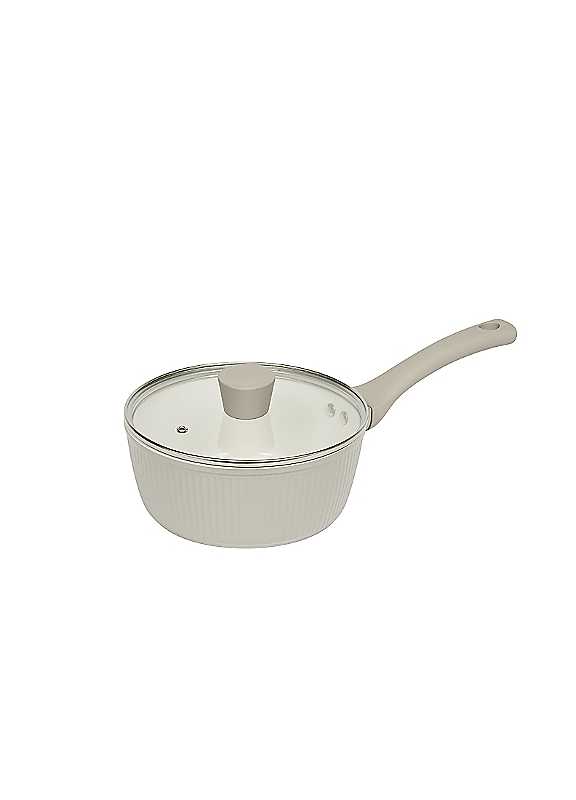 Designed for everyday ease, this saucepan makes light work of home cooking. Whether you're warming sauces, preparing grains or reheating soups. The soft touch handles and white ceramic interior are a joy to use and clean.Ceramic non-stick interiorGlass saucepan lids with steam ventsSoft-touch Bakelite handlesHeat-resistant painted bodyEasy to clean & storeRibbed texture designDimensions approx. 8 x 18 x 35 cm