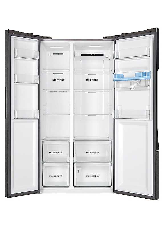 At 90cm wide, Haier's Side By Side 90 refrigerators offer large capacity while providing easy access to both fridge and freezer spaces. The generous storage space allows you to store large amount of food while keeping the space uncluttered and organised. They have an elegant design that can fit any kitchen style and an intelligent electronic interface to set the perfect temperature according to your precise needs. Haier's SBS 90 Series 3 refrigerators boast the No Frost technology and the auto stop hinge at 90°.Model Number: HSR3918EWPG, Integrated: No, Freestanding: YesCapacity: 521L Total (Fridge 330L / Freezer 191L), Energy Rating: EEnergy Consumption: 317kWh, Noise Level: 38dB, Frost Free: YesTemperature Control: Yes, Number of shelves (Fridge): x3 shelvesNumber of Compartments (Fridge): x6 Door shelves, x2 CrisperNumber of Compartments (Freezer): x2 Drawers, x1 Ice holder trayOpen Door Alert: No, Interior Light: Yes, Requires Plumbing: NoWarranty: Up to 5 years, Multi Air Flow, Total No Frost technologyWater dispenser, 90° Auto Stop HingeWeight approx. 85kgDimensions approx. 177.5H x 90.8W x 65.9D cm
