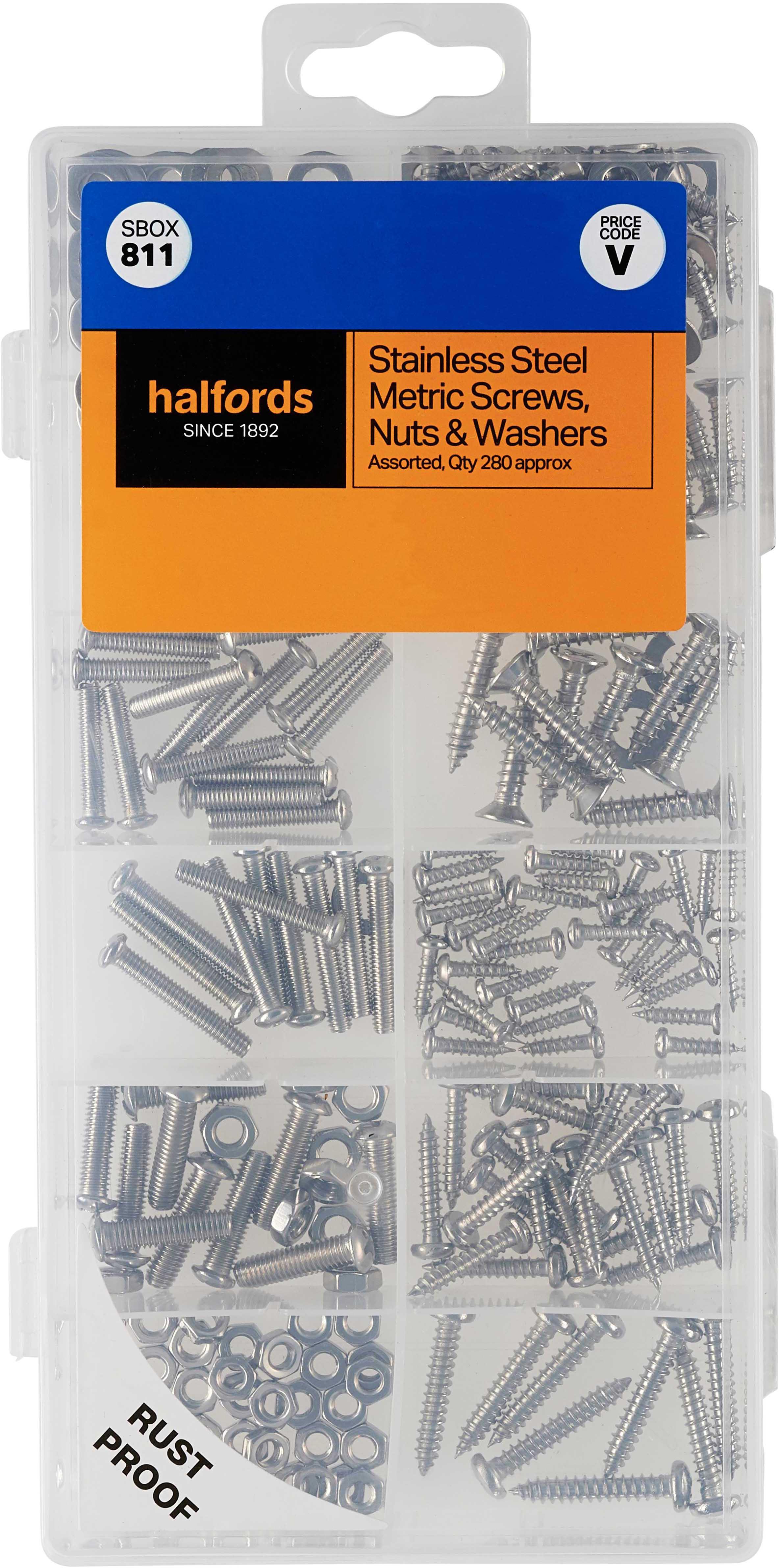 Halfords Assorted Stainless Steel Screws, Nuts & Washers (SBOX811)