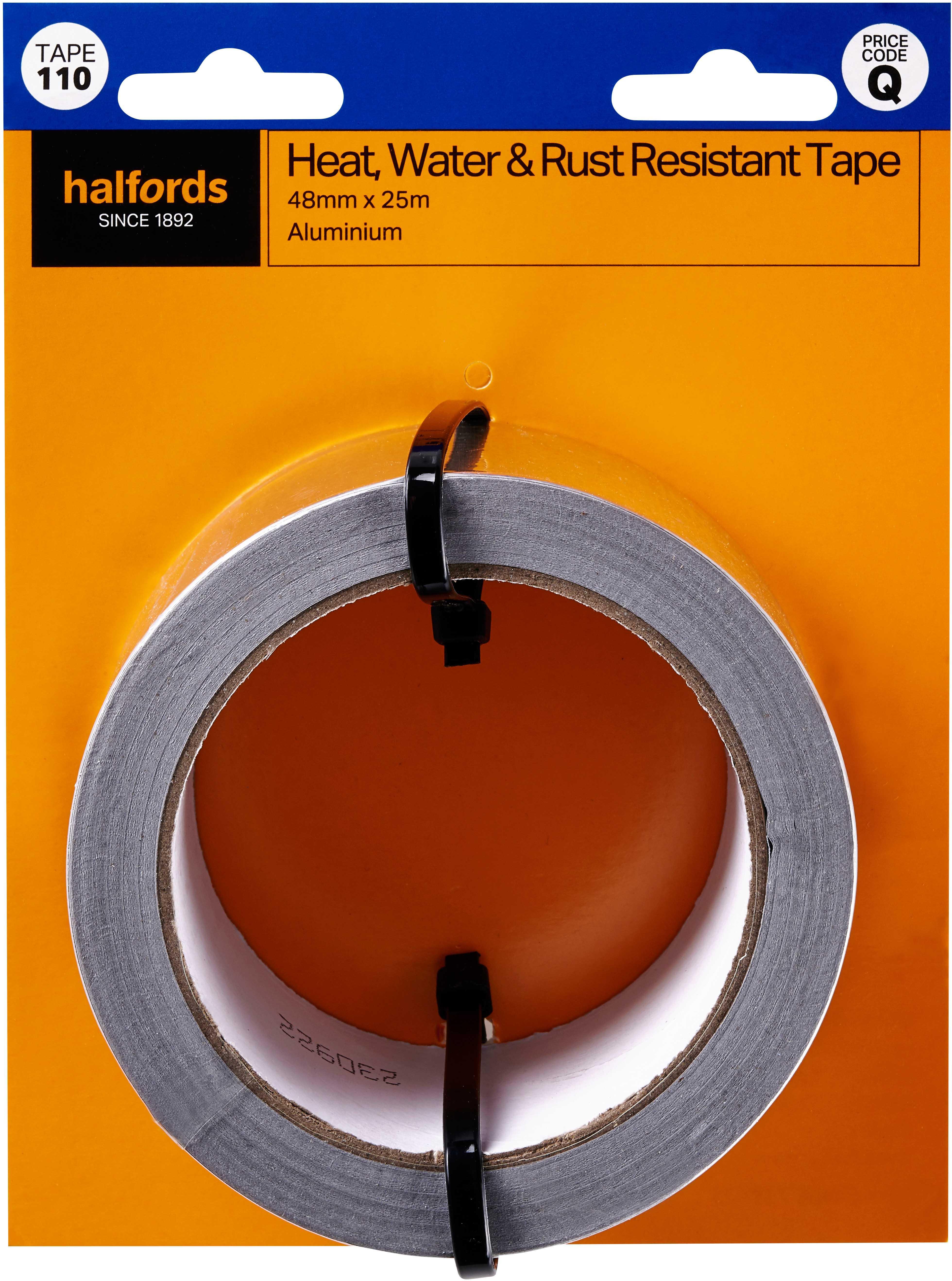 The Halfords heat, water and rust-resistant Tape (TAPE109) can withstand temperatures of up to 60 degrees centigrade and is suitable for use on exhaust pipes and systems.