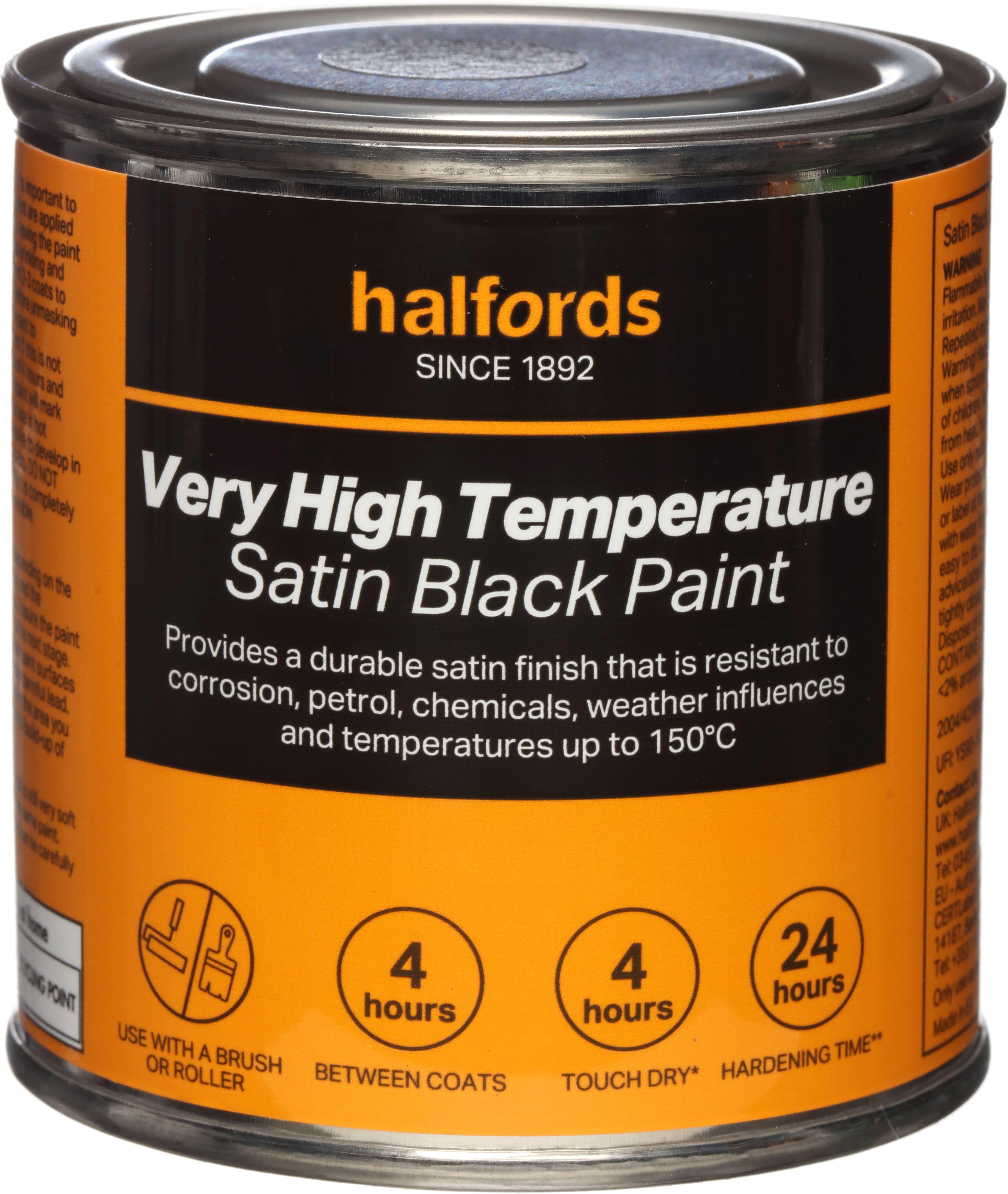 Halfords High Temp Satin Blk Paint 250ml Tin