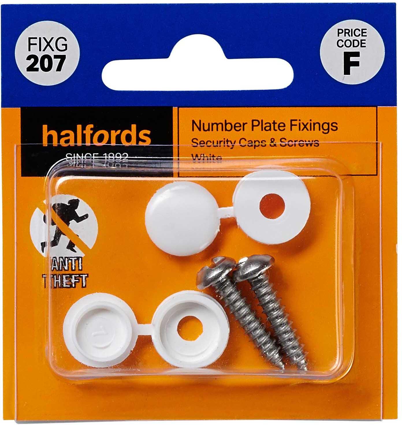 Halfords Number Plate Screws and Caps - White (FIXG207)