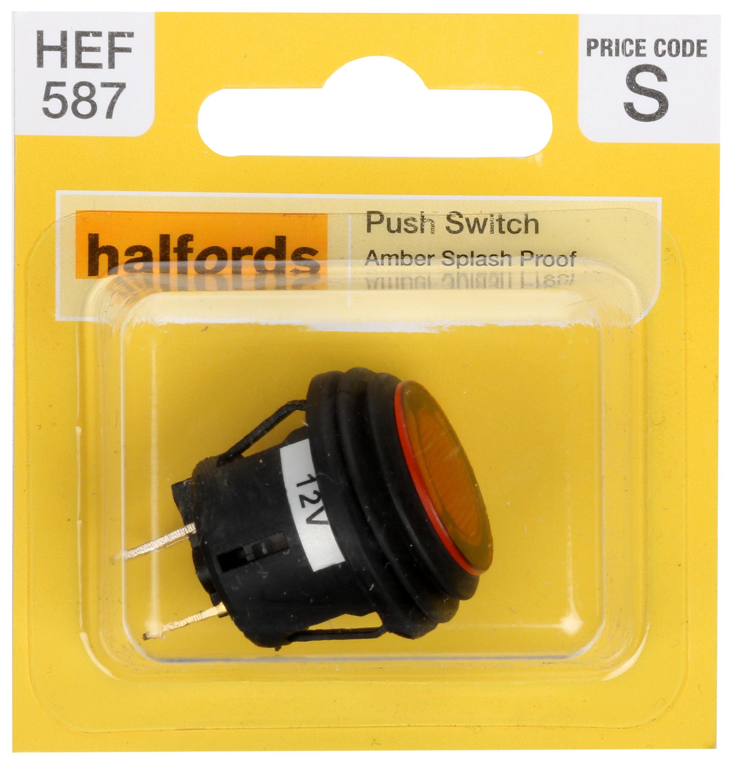 Halfords Push Switch On/Off Splash Proof Amber (ELEC244)