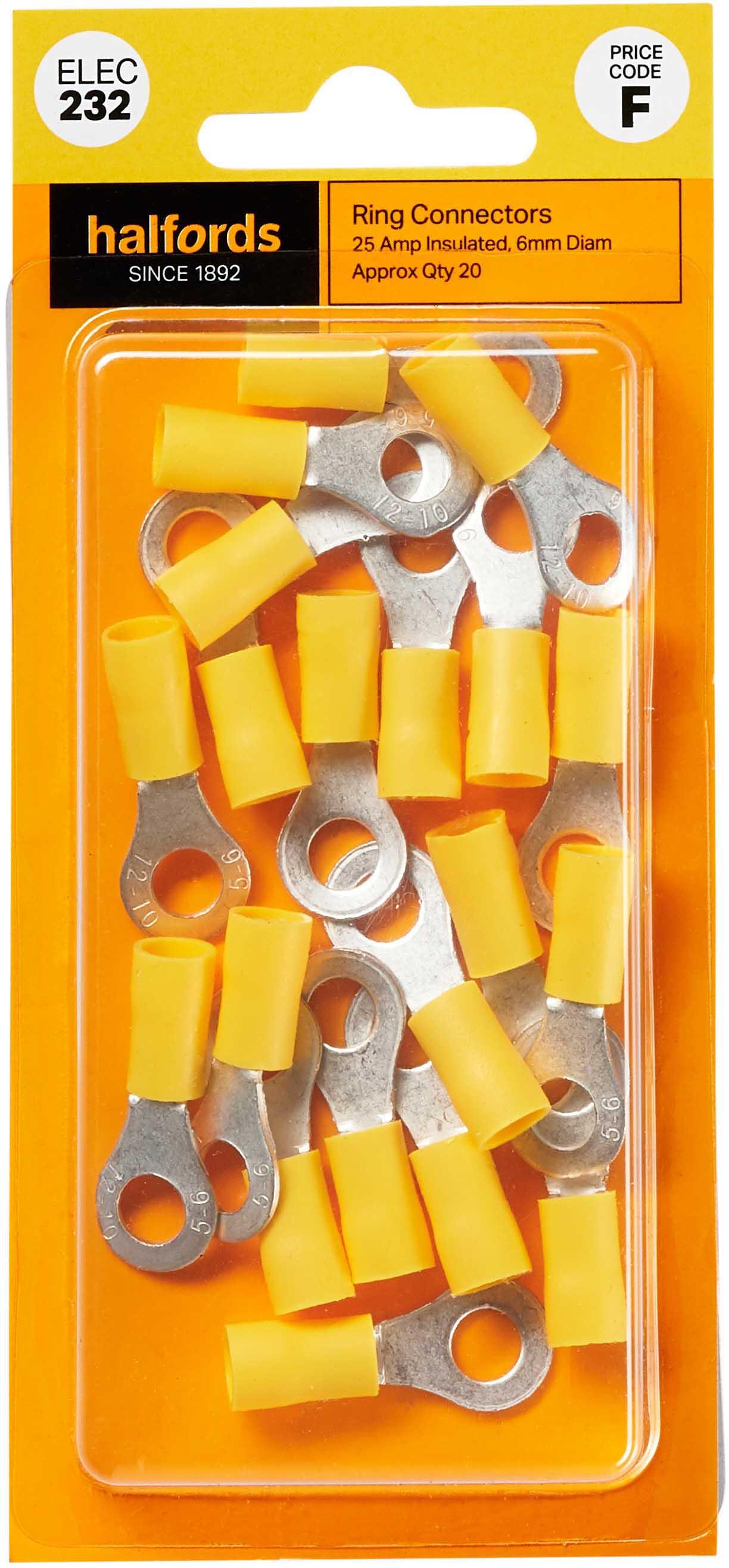 Halfords Ring Connectors 25 Amp Insulated 6mm (ELEC232)