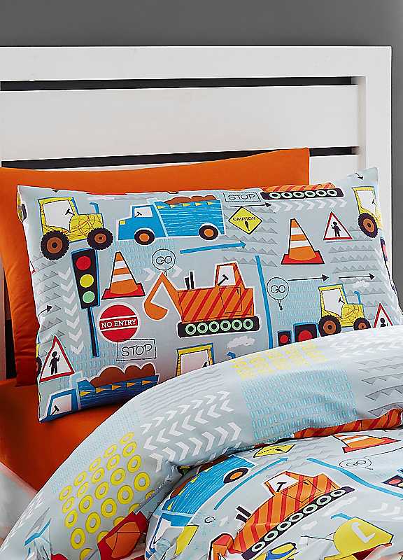 Can we fix it? Yes we can, with this builder-inspired kids bedlinen. The fitted sheet and pair of pillowcases will perfectly complete the look.Iron on low temperatureEasy care cotton blendOeko-Tex certified meaning the product has been tested and proven free of harmful levels of toxic substances.Machine washable at 30°CCool tumble dry55% Polyester, 45% CottonPlease note: Pillowcases & Sheets are sold separately.