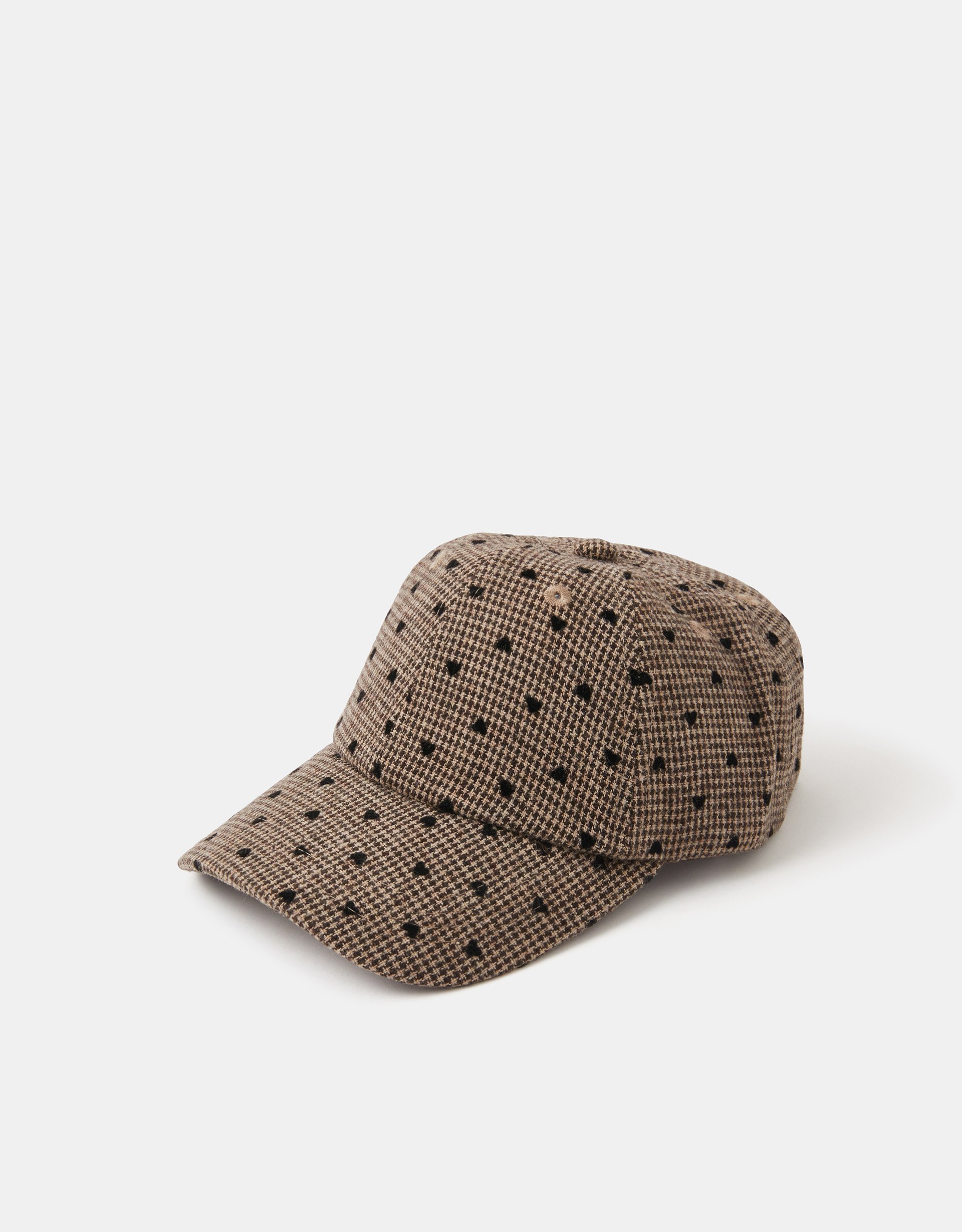 Perfect for rain or shine, this baseball cap is woven with a houndstooth pattern and finished with felt love hearts dotted all-over. Finished with an adjustable back band for a comfy fit.