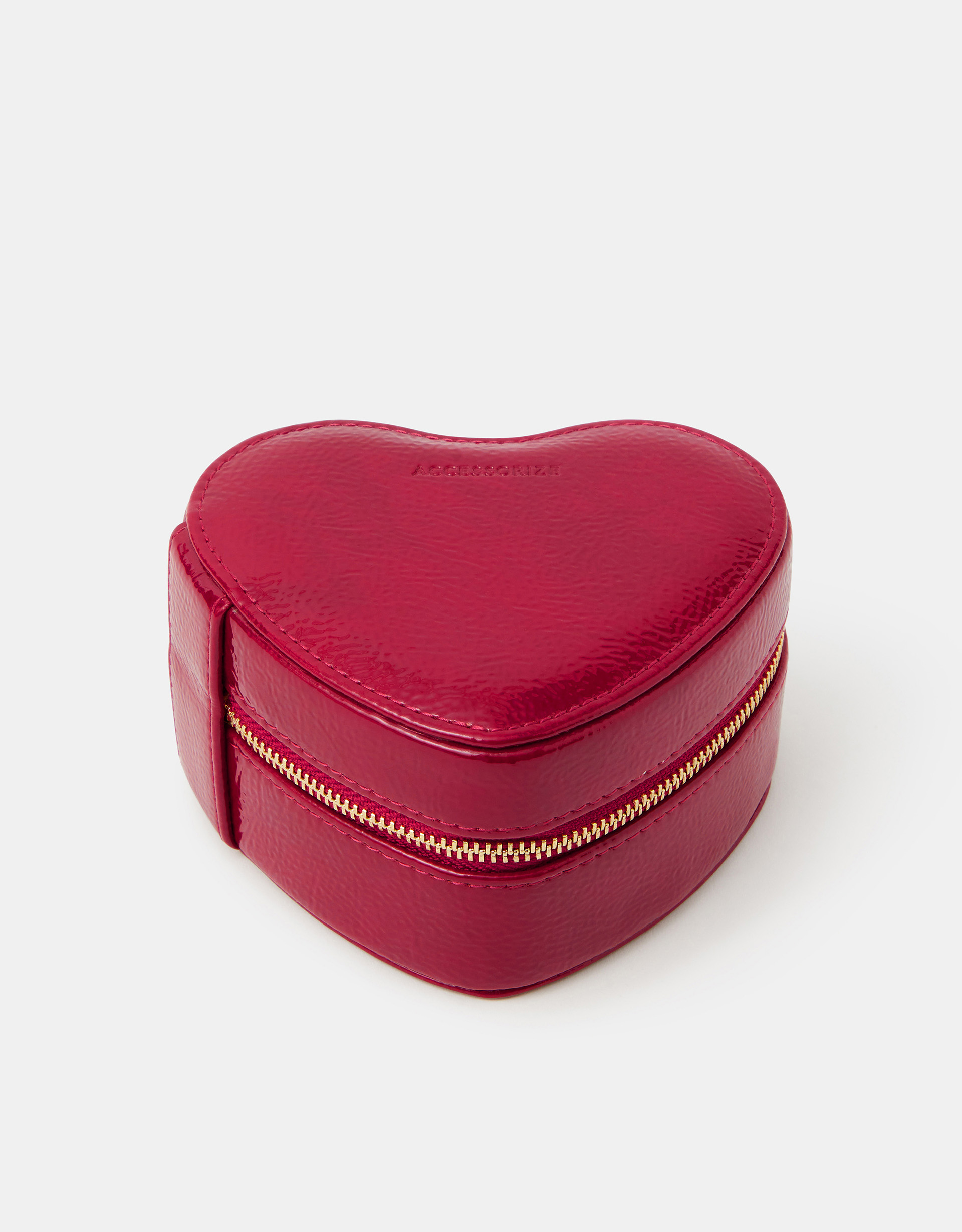 Holiday plans? Keep your little treasures and favourite jewels safe in this heart-shaped jewellery box. Designed in patent leather, it fastens with a zip closure.