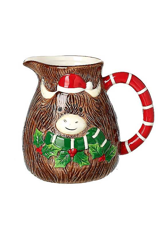 Festive highland cow jug perfect for your Christmas cream for your mince pie.100% DolomiteDimensions approx. 14 x 17.7 x 16 cm