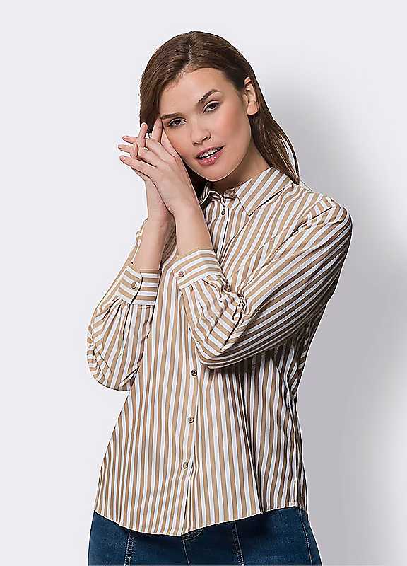 Indulge in the timeless elegance of Heine with our Striped Cotton Shirt. Featuring a classic shirt collar and pearl-effect buttons, this long sleeve top exudes sophistication. The stripes print adds a touch of playfulness, making it perfect for both casual wear and dressed-up occasions. With its long length sleeves and collar neckline, this shirt is a must-have for every fashion-forward woman. Elevate your wardrobe with Heine's Striped Cotton Shirt.Shirt collarPearl-effect buttonsLong sleevesMachine washable100% CottonLength approx. 68 cmPlease Note: European sizing tends to run smaller than UK. We suggest sizing up for the perfect fit!By purchasing these products you are supporting the sustainable farming of cotton as part of the 'Cotton Made in Africa' initiative and contributing towards the improvement of living conditions for cotton farmers in Africa.