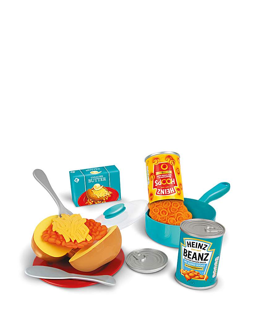 Who said jacket potatoes had to be boring? With the heinz beanz & hoops make & play set, your budding chef can unlock a whole new level of flavour at dinner time, ready to impress family, friends, and cafe customers alike. A must-have addition to any bustling kiddy kitchen, this play set includes heinz beanz and heinz hoops (tins and contents), a saucepan and lid, jacket potato, cheese, cutlery, plate, and butter. So, no need to rummage around in the cupboards looking for all the different ingredients. Here, your little one has everything they need to rustle up the perfect spud from start to finish. place your order and watch as they whizz around the kitchen, stirring saucepans, adding cheese, and serving your jacket potato with your heinz topping of choice. Designed to mimic real-life cooking experiences, the tins feature removable lids perfect for pretend play. Youngsters can imagine serving, stirring, and combining ingredients just like they would in a real-life kitchen, while improving their hand-to-eye coordination and enhancing their fine motor skills. Whether they're rustling up a feast for family and friends or being 'head chef' at their very own cafe, we're sure the heinz beanz & hoops make & play set will unlock hours of fun and creativity. but which topping goes on first - beans or cheese? No batteries required. Suitable for ages 2+.
