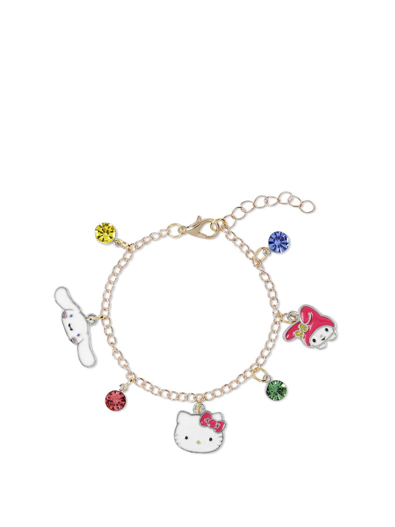 Hello Kitty Charm Bracelet Bring A Bit Of Hello Kitty Charm Wherever You Go With This Adorable Hello Kitty & Friends Bracelet. Featuring Intricate Hello Kitty, My Melody And Cinnamoroll Charms Surrounded By Colourful Alternating Sparkling Stone Charms. Complete With An Adjustable Chain Bracelet. This Bracelet Is Presented In Official Hello Kitty Packaging. Depth: 1 Mm Height: 250 Mm Width: 70 Mm Clasp: Y Fashion Jewellery Type: Bracelets Metal Type: Stainless Steel Hello Kitty Charm Bracelet Hello Kitty, My Melody And Cinnamoroll Charms Sparkling Stone Charms