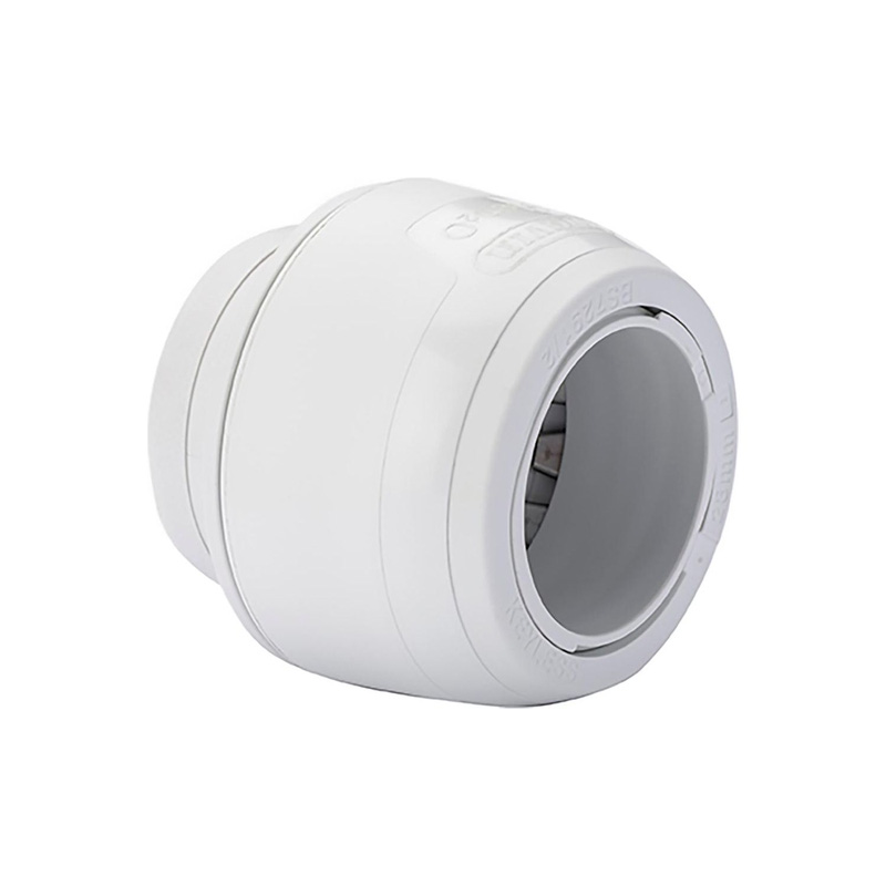 Make your plumbing jobs easier, quicker, and more secure with the Hep2O keyless system. Packed with unique features, these fittings are designed for a fast and reliable installation every time. The innovative In4Sure joint recognition tells you when the pipe is fully inserted, giving you a secure connection you can feel and hear. Need to make a change? Hep2O is the only system that allows for secure hand demounting without needing a separate tool, making adjustments simple and hassle-free. All Hep2O fittings come with a 50-year guarantee, so you can fit them with complete confidence. * Faster and easier – designed for a quick and secure installation * In4Sure joint recognition – tells you the pipe is fully inserted * Keyless demounting – easily demount by hand without a tool * 50-year guarantee – fit with confidence * A wide range of fittings available – including tees, elbows, connectors and valves | Hep2O Keyless Demountable Stopend 28mm in White