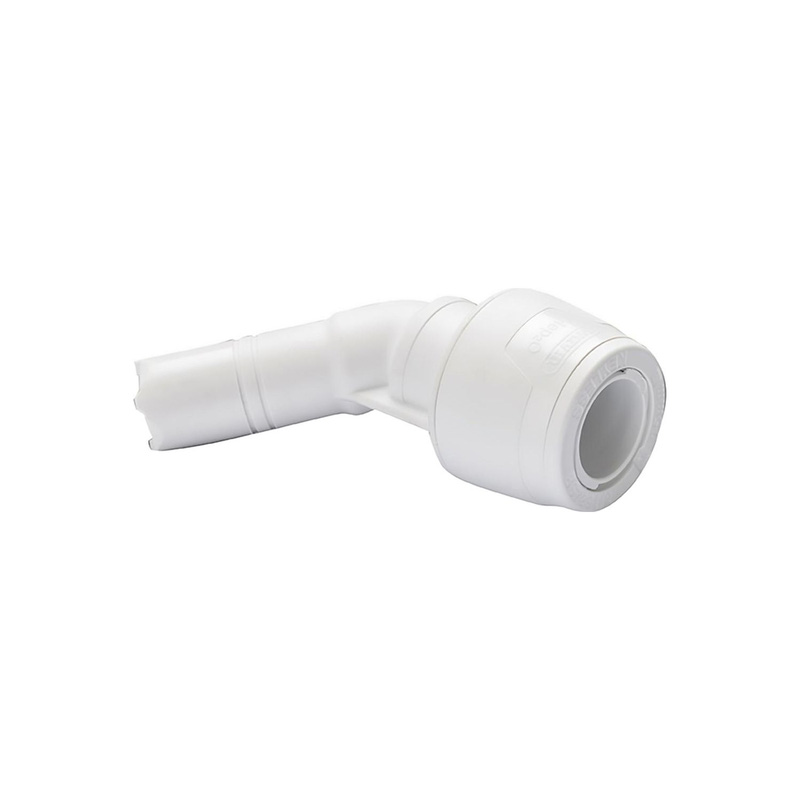 Make your plumbing jobs easier, quicker, and more secure with the Hep2O keyless system. Packed with unique features, these fittings are designed for a fast and reliable installation every time. The innovative In4Sure joint recognition tells you when the pipe is fully inserted, giving you a secure connection you can feel and hear. Need to make a change? Hep2O is the only system that allows for secure hand demounting without needing a separate tool, making adjustments simple and hassle-free. All Hep2O fittings come with a 50-year guarantee, so you can fit them with complete confidence. * Faster and easier – designed for a quick and secure installation * In4Sure joint recognition – tells you the pipe is fully inserted * Keyless demounting – easily demount by hand without a tool * 50-year guarantee – fit with confidence * A wide range of fittings available – including tees, elbows, connectors and valves | Hep2O Keyless Obtuse Bend 135º Single Socket 15mm in White