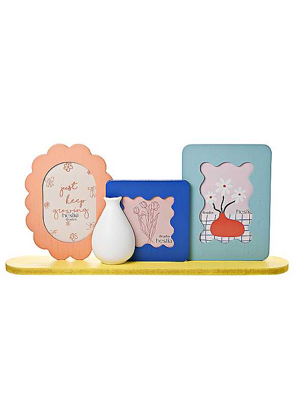 Brighten up any room with the Hestia 3 Frame Collage with Vase - Brights, a lively and colourful arrangement of whimsical frames designed to showcase your most treasured memories. This eye-catching piece not only adds a playful splash of colour but also includes a charming vase, allowing you to bring a touch of nature indoors and create a warm, inviting atmosphere.Vibrant, playful designThree whimsical framesIntegrated vaseCompact and stylishDimensions approx. 21.4 x 47.6 x 8.1