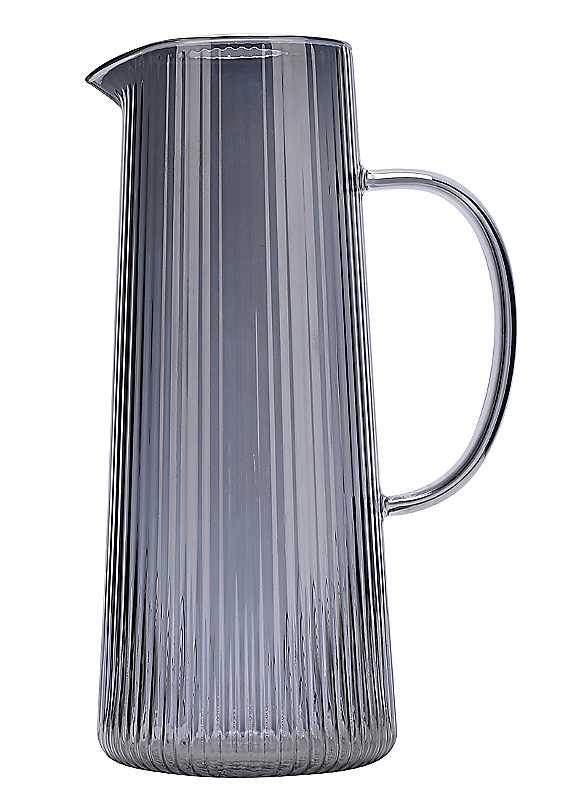 Enhance homes with the Hestia Grey Ribbed Jug, a stylish and practical glass pitcher. Its grey finish and ribbed texture add a unique dimension to the table setting. The jug features a curved handle. It is perfect for serving water, juice, or cocktails. This jug's modern aesthetic and sleek silhouette offer an elegant touch to any dining experience. Elevate the table with the sophistication of the Hestia Grey Ribbed Jug.GlassDimensions approx. 10D x 13W x 25H cm
