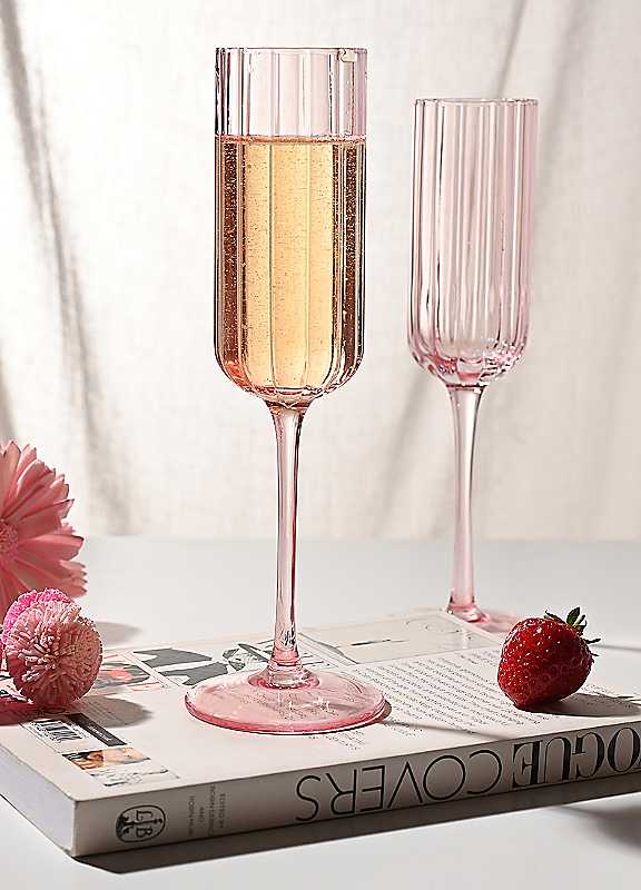 The set of two Bright Pink Scalloped Glass Champagne Flutes adds a vibrant, celebratory touch to any occasion, featuring a soft pink tint and elegant scalloped detailing that catches the light beautifully. Their tall, refined shape makes them perfect for toasting with prosecco, champagne or sparkling cocktails, while the sturdy glass construction ensures they're both stylish and practical for use. A striking addition to your glassware collection or a thoughtful gift for someone who loves bold, modern design.Set of 2GlassDimensions approx. 23H x 7W x 7D cm