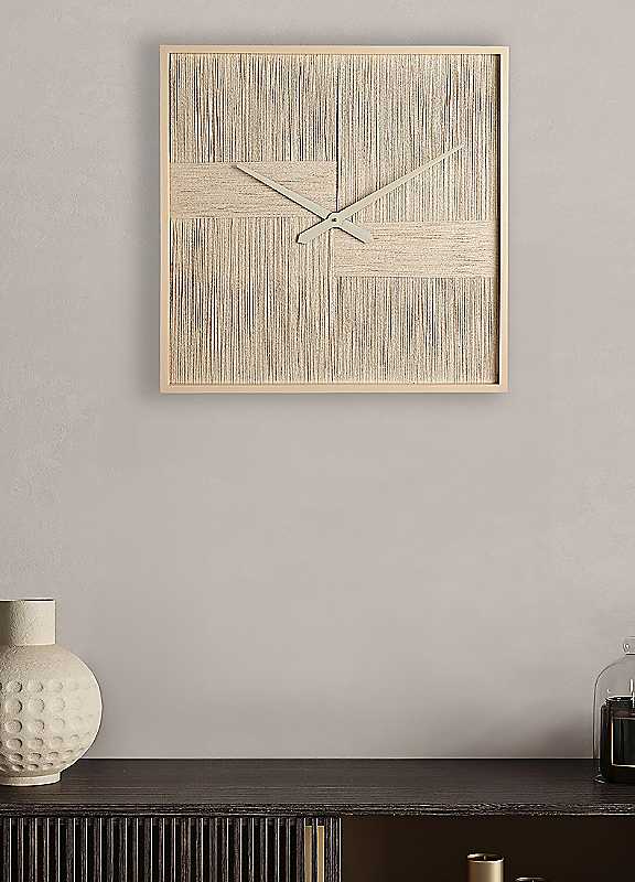 The Woven Thread Wall Art Clock - Cream blends function with contemporary texture, featuring a soft woven thread backdrop and matching cream hands for a clean, modern finish. It's neutral palette makes it easy to style in living rooms, bedrooms or home offices, adding both visual interest and practical timekeeping. Designed for simple wall mounting, it operates using 1 AA battery (not included), offering an effortless way to bring subtle style to your space.WoodDimensions approx. 60H x 60W x 4D cm