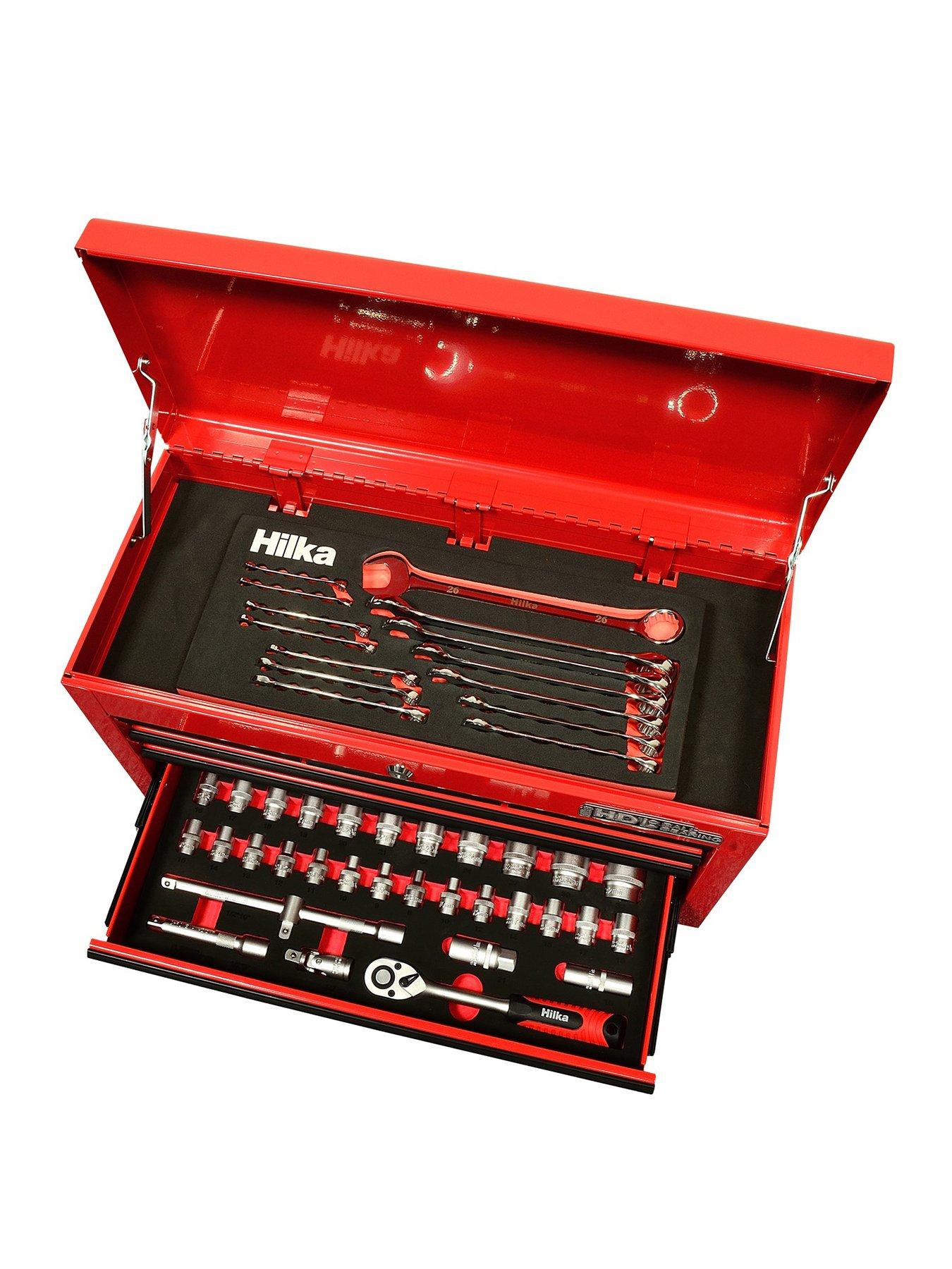 Hilka 47 Pce Eva Kit In 6 Drawer Chest 47 Pce Eva Kit In 6 Drawer Chest. The Starter Tool Kit, Includes Our Eva 32 Pce 1/2" Drive Socket Set And 14 Pce Spanner Set All Stored In A 6 Drawer Tool Chest For Convenience And Gives Extra Space For Other Tools. Depth: 600 Mm Height: 345 Mm Width: 260 Mm Cordless: N The Sockets Features Chrome Vanadium Steel Fully Heat Treated With Satin Chrome Finish For Durability. Wall Drive Sockets Give More Torque And Avoids Damage To The Nut With A Quick Release Soft Grip 72 Teeth Ratchet. The Spanner Features Fully Polished Chrome Vanadium Steel Spanners Tempered And Hardened For Durability. Precision Machined 12-Point Combination End With 15-Degree Offset For Use In Awkward Positions.