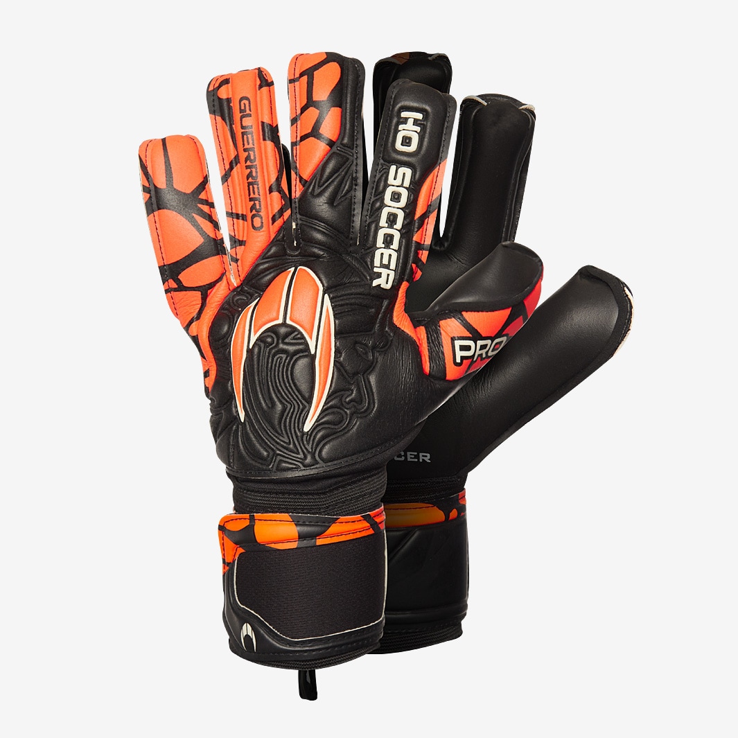 Play to professional standard with the HO Guerrero Pro goalkeeper gloves in Axial Orange, designed to provide lightweight comfort and reliable, durable performance. Featuring a 4mm AQUA FORMULA latex palm, HO Guerrero Pro goalkeeper gloves offer excellent grip in wet and dry conditions and deliver professionalquality performance. As preferred by many pro keepers, the gloves negative cut provides a close, comfortable feel on the ball. A new, lightweight TC Fleece backhand body retains its structure for a secure feel, while the 9cm elasticated wrist closure ensures a secure and stable fit on the hand. Cut Negative with wrap over thumb Palm 4mm AQUA FORMULA latex + 3mm foam Backhand 5mm latex + 3mm foam Body RobustTC Fleece which provides lightness and comfort Wrist Closure 9cm elasticated wrist closure with velcro strap and two anchor points