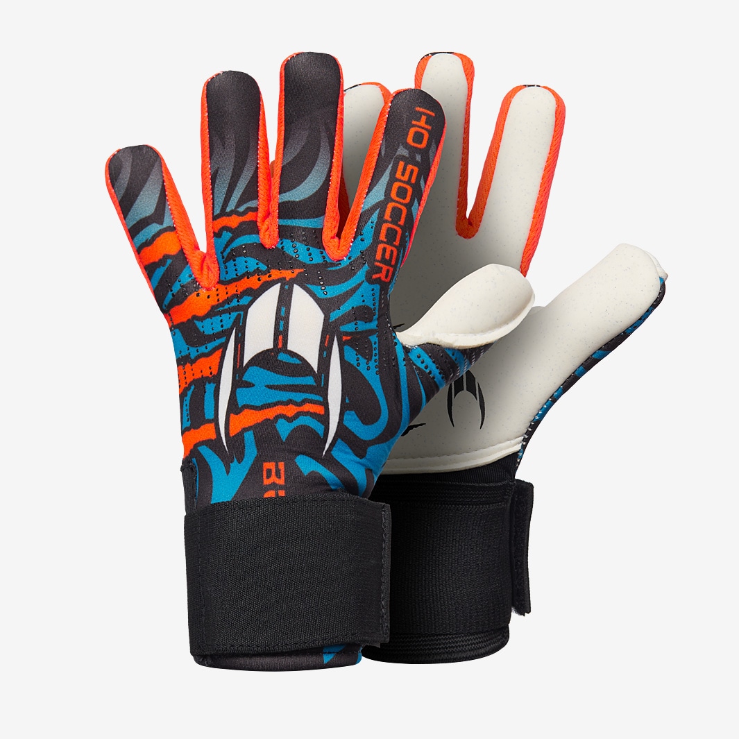 Be a beast in your box with HO Kids Beast Plus goalkeeper gloves in Hazard Blue, featuring a durable latex formula developed for play on artificial turf and hard ground. Combining a lightweight neoprene body with that highly resilience RESISTANCE latex on the palm, the Beast Plus lets you play with full agility, safe in the knowledge that your gloves will survive repeated ground contact. Theres SOFT SILICONE 3.0 engraving on the backhand for extra purchase and control over punches, while this editions negative cut gives a snug feel. At the wrist, a semielastic closure with a removable strap lets you adjust the fit to preference. Cut Negative with thumb wrap Palm 3mm RESISTANCE latex Backhand SOFT SILICONE 3.0 engraving located mainly over key areas in contact with the ball Body New LIGHTNEOPRENE, which provides great elasticity and lightness to the glove Wrist Closure 7cm semielasticated wristband with independent elastic strap
