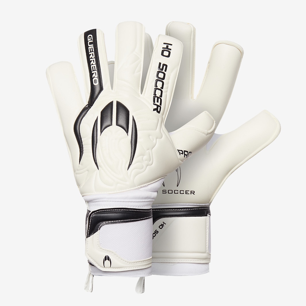 Play to professional standard with the HO Kids Guerrero Pro goalkeeper gloves in WhiteBlack, designed to provide lightweight comfort and reliable, durable performance. Featuring a 4mm AQUA FORMULA latex palm, HO Guerrero Pro goalkeeper gloves offer excellent grip in wet and dry conditions and deliver professionalquality performance. The gloves rollnegative cut provides a close, comfortable feel on the ball while extending around the outer fingers and thumb for increased surface contact. A new, lightweight TC Fleece backhand body retains its structure for a secure feel, while the 9cm elasticated wrist closure ensures a secure and stable fit on the hand. Cut RollNegative with wrap over thumb Palm 4mm AQUA FORMULA latex + 3mm foam Backhand 5mm latex + 3mm foam Body RobustTC Fleece which provides lightness and comfort Wrist Closure 9cm elasticated wrist closure with velcro strap and two anchor points