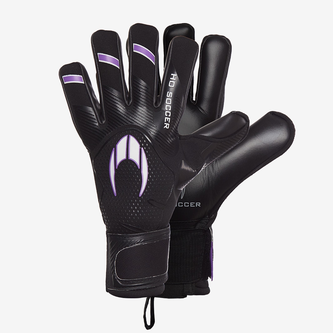 With a lightweight build thats packed full of tech, HO Kids Supremo Pro SMU goalkeeper gloves in BlackPurple have an Aqua Formula latex and a negative cut for excellent control in all conditions. The 4mm Aqua Formula latex palm is fit for the professional game and delivers HOs best grip in all conditions, while internal silicone inserts strategically positioned along the inside of the palm increase stability and reduce slippage.On the backhand, the soft neoprene has a 3D Gel Shield system that gives protection without sacrificing comfort when punching the ball.The elasticated wrist closure with double fastening and velcro adjustment gives a perfect secure fit to the wrist. Palm 4mm Aqua Formula latex + 3mm foam with internal silicone inserts Cut Negative cut Backhand 3D Gel Shield system applied over an ergonomically lightweight body with a punch zone over the fingers Body Soft and comfortable neoprene in a single piece construction up to the wrist Wrist Closure 9cm elasticated wrist closure with double fastening and velcro adjustment