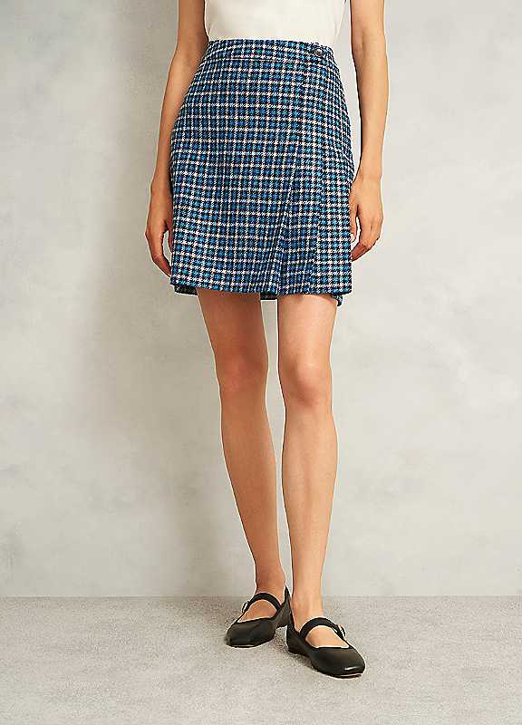 Hallmarking Hobbs British heritage, the Molly skirt is spun with a colourful check for a contemporary edge.Traceable woolwoven at the Abraham Moon millLined for comfortKilt skirtSide pleatsButton tab detailDry clean only100% WoolLength approx. 48 cm (18.8 ins) | mini kilt skirt, colorful mini skirt, wool mini skirt, plaid wool skirt, blue mini skirt, blue pleated skirt