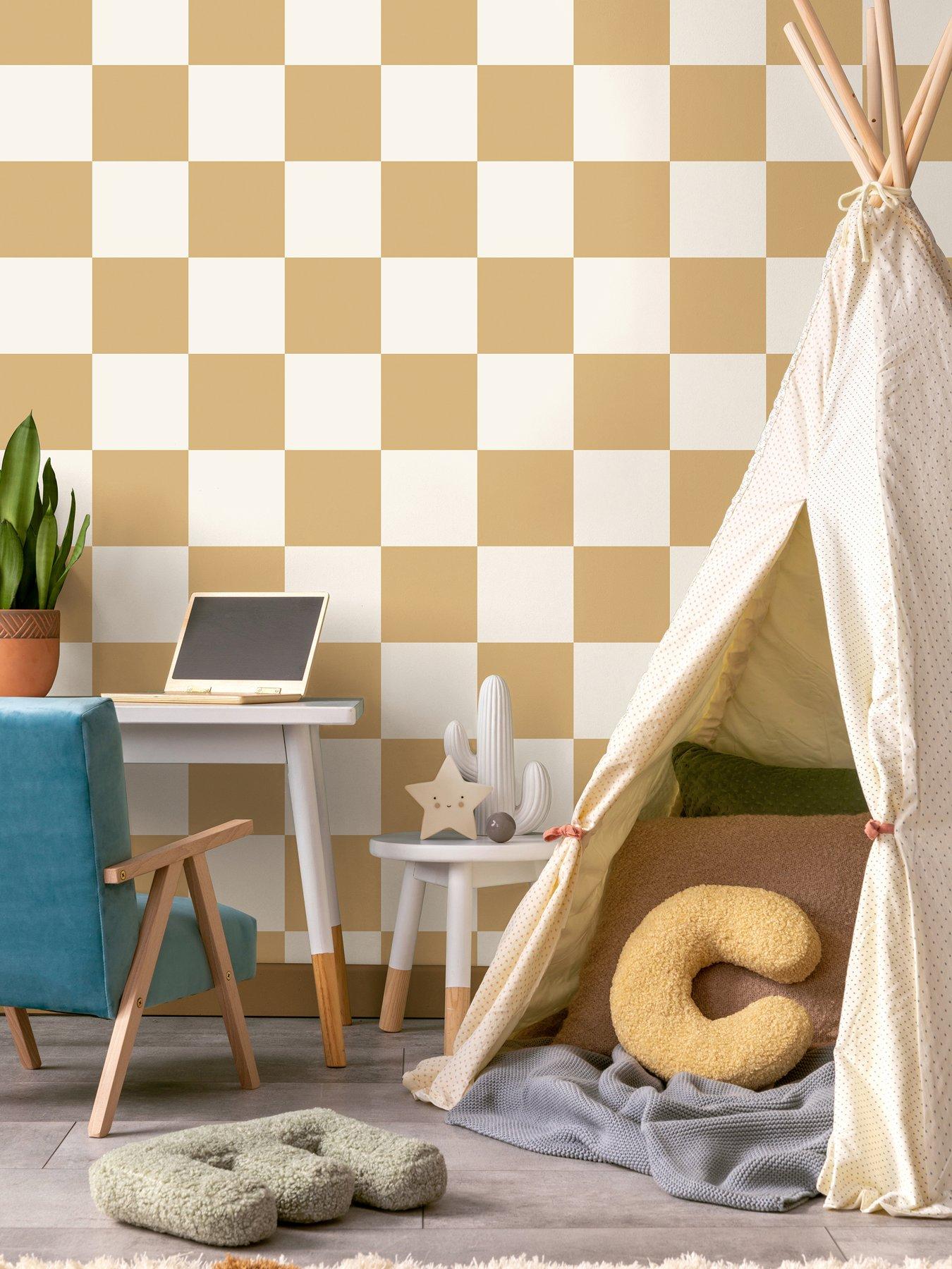 Holden Decor Check This Out! Orange Wallpaper This charming wallpaper features a large checkerboard print that brings a playful touch to any space. Offering a sense of fun while remaining calm and easy on the eyes, it brings a subtle pattern and personality to a child's room. Depth: .1 CM Height: 1005 CM Material Content: Paper Wallpaper Design: Geometric Width: 53 CM A large checkerboard print Ideal for both feature walls and full-room coverage in your childs room Installation instructions are provided with every roll Pattern Match: Straight Match Pattern Repeat: 26.5cm