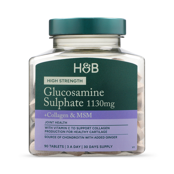 What is it? Holland & Barrett High Strength Glucosamine and Chondroitin Complex, with Vitamin C, support healthy cartilage and ginger to support healthy joints. Glucosamine is a building block of cartilage and joint tissue, taking these supplements can aid your cartilage production and help maintain your joints. Supports Joint Health High Strength Glucosamine and Chondroitin Tablets Contributes To Normal Collagen Formation What Are the Benefits of This Supplement? Glucosamine is a building block for cartilage and joint tissue. It’s essential for the syntheses of several important macromolecules including glycoproteins, glycolipids and glycosaminoglycans. These macromolecules can be found in the synovial fluid, cartilage, tendons, ligaments, and muscles. Another essential building block of cartilage is chondroitin; this tough tissue acts as a shock absorber around the joints in humans and animals. It’s chondroitin’s job to help your cartilage hang on to water. Chondroitin is also found in tendons, ligaments, bone, and skin. These supplements contain MSM – a natural form of organic sulphur which supports the body’s production of glycosaminoglycans (key components of cartilage). Holland & Barrett International Limited, Barling Way, CV10 7RH, UK Holland & Barrett Limited, 45 Henry St, D01 E9X8, Ireland