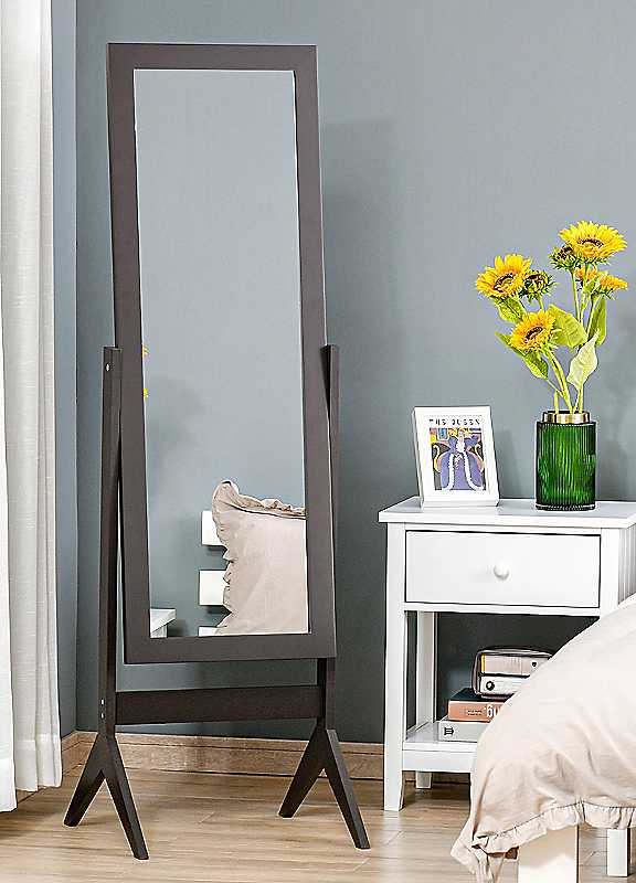 HOMCOM Freestanding Dressing Mirror 148x47cm Adjustable Angle Dark Brown Frame