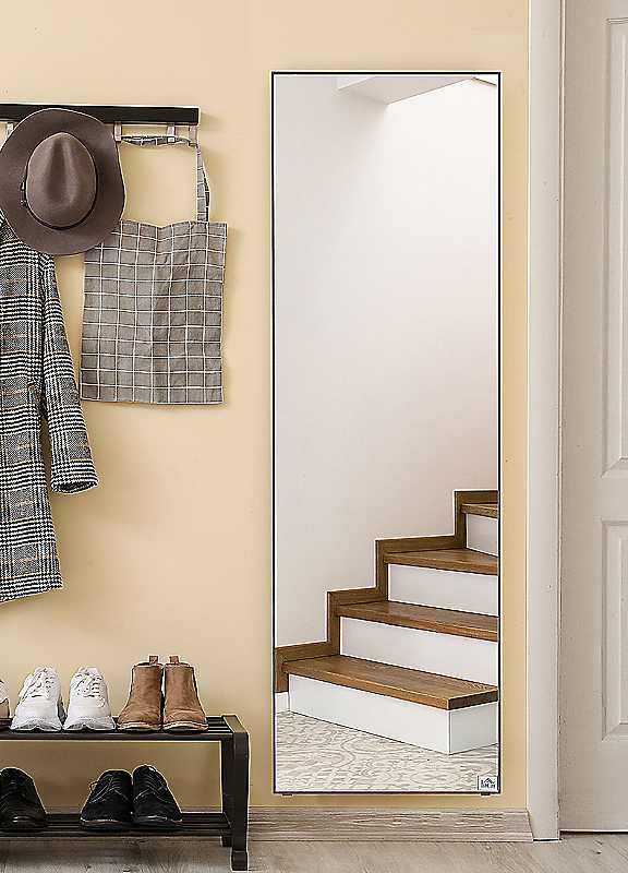 HOMCOM Full Length Mirror Floor Standing Or Wall-mounted, Dressing Mirror, Black