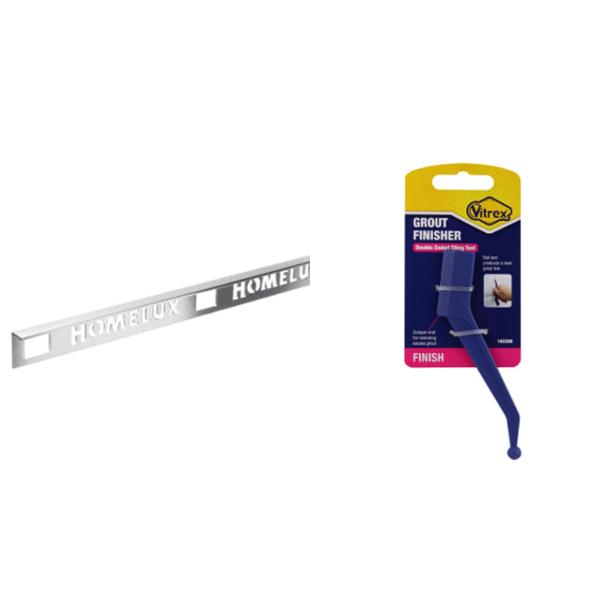Homelux 12 5mm Metal Straight Silver Tile Trim 2 44m + Vitrex Grout Finisher