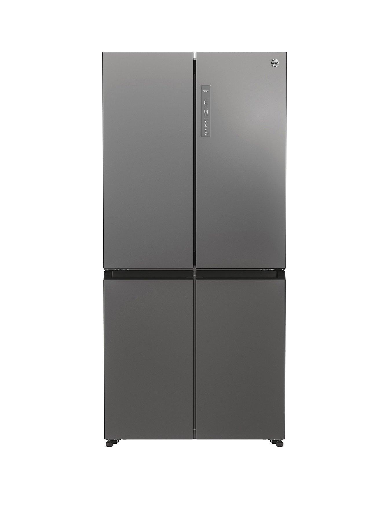 Hoover HHCR3818ENPL Total No Frost American Fridge Freezer, E Rated - Inox Get FREE standard delivery on selected home appliances worth up to £19.99 from 04/02/2026. Place any order on selected home appliances between 04/02/2026 and 18/02/2026, and get free standard delivery at checkout. This Total No Frost American fridge freezer from Hoover has a huge 467 litre capacity and a stylist design with innovative featured. These combine to present the perfect fridge freezer for your home, one which will keep food fresher for longer. The fridge has a 311 litre capacity, equivalent to 17 bags of shopping and the large doors make access easy across the full width of the compartment. There are three full length, glass, none spill shelves, two salad crisper drawers and six adjustable door balconies for additional storage. This means the fridge can be personalised to meet your storage needs. Multi Air Flow technology distributes the cool air from the freezer around the fridge compartment, keeping the temperature even across the fridge, preserving freshness and flavours for longer. The fridge is lit with a daylight LED light meaning all your contents are fully visible. The freezer has a 156 litre capacity, equivalent to 9 bags of shopping. The Total No Frost technology circulates cool air around the freezer cavity preventing ice building up and making defrosting a thing of the past. Storage is split over six compartments with easy access drawers which also help with visibility of their contents. There is also a super cool function for fast freezing Controls are via a digital panel on the door with an easy to use touch display. Dimensions: H 181.5 x W 83.3 x D 65cms Pack dimensions (boxed): H 189.7 x W 95.5 x D 74.7 cms Depth: 650 MM Energy Rating: E With the Total No Frost technology you won't need to defrost your freezer anymore. It avoids frost creation in the freezer. The Total No Frost Air Care guarantees homogeneous temperature and humidity on every shelf The Cool Space Plus, thanks to its humidity control, is the ideal spot to store your fruit and vegetable while keeping them always fresh. The Super Cool and Super Freeze functions are the ideal solutions when you need to cool down food and beverage fastly. With the internal display you can easily choose the level of temperature you prefer, from 2°C to 8°C. Thanks to the maxi capacity (400 LT) of this multidoor it is possible to store a large amount of food and conserve it in a correct position With the Total No Frost technology you won't need to defrost your freezer anymore. It avoids frost creation in the freezer. Frost Free Auto Defrost Height: 1815 MM Number of Drawers: 6 Number of Shelves: 3 Reversible Door: N Total Net Capacity: 467 Width: 833 MM