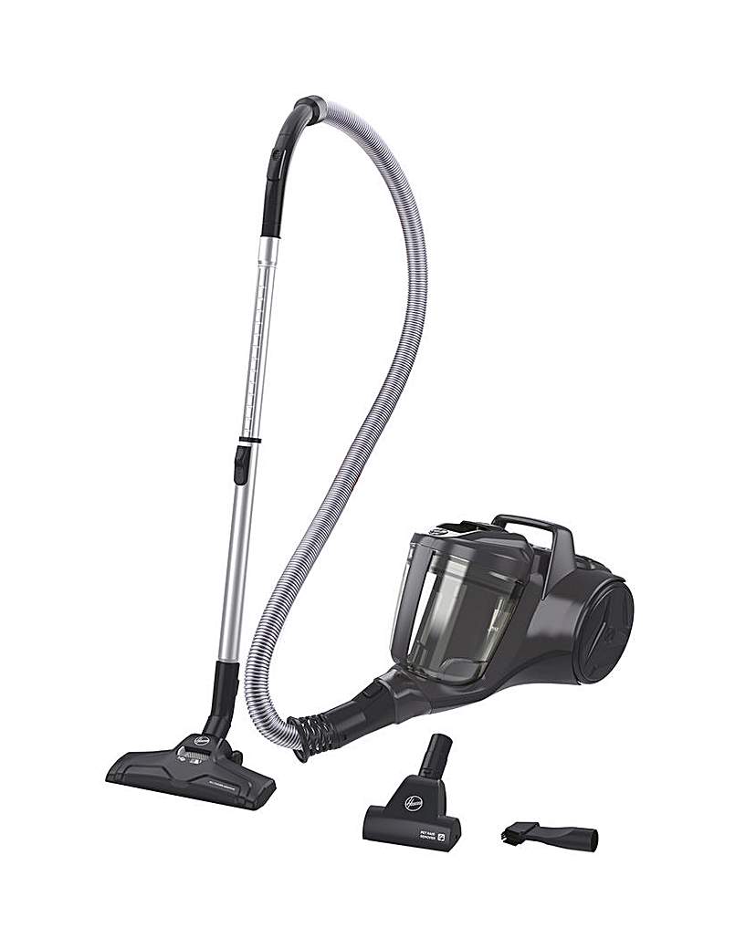 Cleaning made easy with the new Hoover HP1 Bagless Cylinder Vacuum. Lightweight and compact with generous 2L capacity and a Pets brush to lift cat or dog hairs from furniture. 1. All floors - suitable for carpets and hard floors. 2. Lightweight - easy to carry upstairs. 3. Large capacity - 2 litre bagless. 4. Single Cyclone - helps prevent dust from clogging the filter. 5. Pets model - comes with an extra tool to remove dog and cat hairs from surfaces. Above Floor Cleaning - Simply attach the 2-in-1 tool to the end of the tube to clean above floor surfaces. The metal tubes can be adjusted to suit users of different heights, or extended for above floor cleaning when a longer reach is needed. Pets Turbo Brush - This vacuum cleaner comes with a mini turbo brush to help remove stubborn pet hairs from cushions, sofas and carpets. The rotating bristles penetrate deeply into the fabric to loosen the fur and vacuum it into the dust collection chamber. Washable Filters - The filters can be washed in tap water and left to dry for at least 24 hours before reassembling. We recommend to clean the filters regularly, for optimal performance.