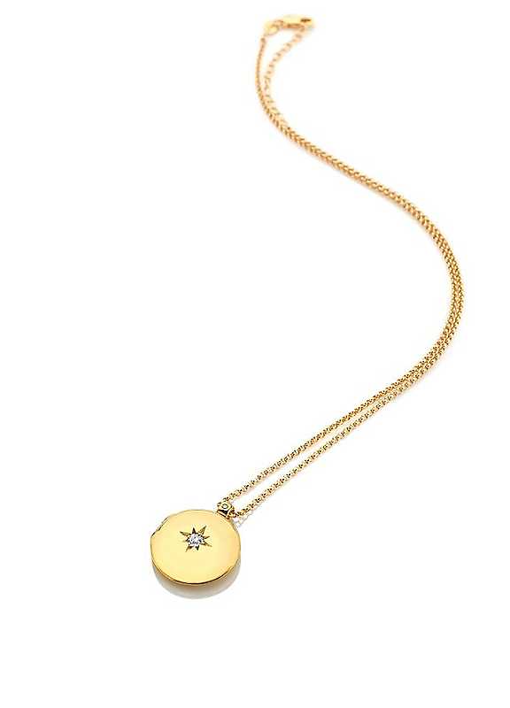 We are Hot Diamonds. We love to thrill you with our diamond jewels. We have a creative hub - our design studios in Berkshire. It's where the magic happens. Where we dream up gorgeous new gems, and work, consciously, to make them real. To make you happy. Our jewels are well travelled. They're loved throughout the world, but we'll always be a British brand at heart. Here's what we love. Creative. Conscious. Crafted. Bring a little sparkle to your jewels with White Topaz. This eye-catching gemstone is worn for love and affection. This locket measures 19mm wide and the chain can be worn at 40cm or 45cm.Brand: Hot DiamondsSterling Silver, 18ct Gold1 x 1pt DiamondDiamond and White Topaz40-45cm Adjustable Length | gold locket necklace, diamond topaz necklace, gold chain pendant, 18 karat gold necklace, sterling silver locket, diamond pendant necklace