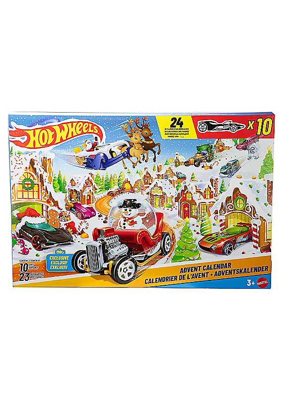 Drive the holiday spirit with a Hot Wheels 2025 Advent Calendar. Behind each of the 24 doors is either a 1:64 scale toy car or an accessory to inspire wintery adventures. The set includes 34 pieces total: 10 vehicles with one that's exclusive to this set; 10 ornament clips to put each car on display; and 14 surprise accessories such as a yeti or gingerbread house for expanded storytelling.Colours and decorations may vary.Age suitability: 3 years+Choking Hazard - Not suitable for children under 3 years of age.