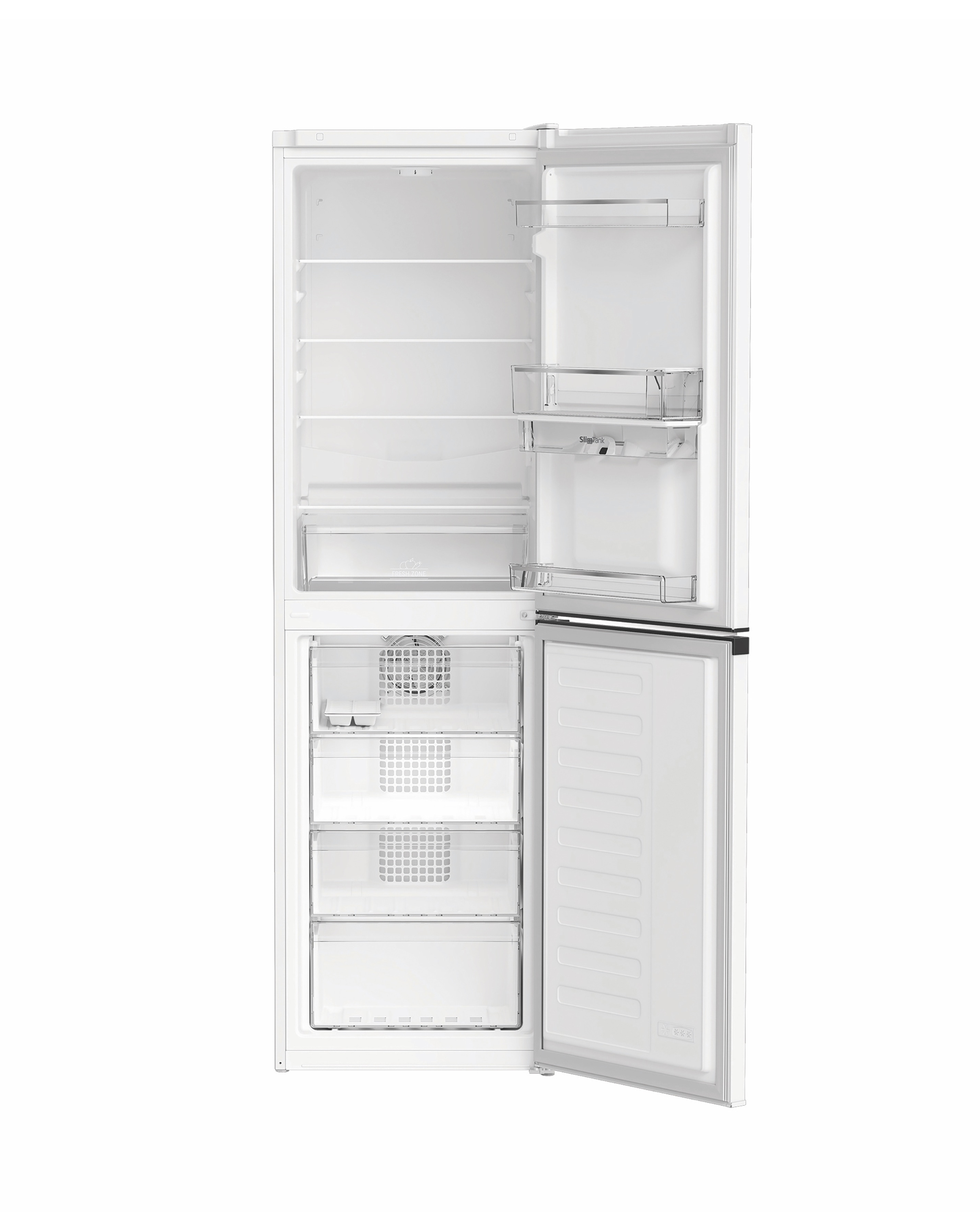 This Hotpoint freestanding 50/50 fridge freezer in sleek dark grey features thoughtful technology that keeps your food fresh and prevents waste. With a spacious capacity of 270L, it provides ample space for 15 shopping bags, so you can easily fit all your groceries in. Our clever No Frost technology ensures a constant airflow inside the freezer, so youll never have the dreaded chore of defrosting it. Inside youll find a dedicated Fresh Zone drawer, which maintains the correct temperature for crisp salad and long-lasting vegetables, while adjustable shelves give added flexibility to accommodate larger items effortlessly. Bright LED lighting illuminates the interior of your fridge so you can see everything clearly, and the reversible door design lets you position it perfectly in your space. Outside, the integrated water dispenser lets you quench your thirst instantly with quick and easy access to chilled water. Water Dispenser/Fresh Zone drawer/Freezer Protect/Fast Freeze/LED Interior Lighting/Temperature Alarm/Adjustable Shelves/Reversible Doors. With our installation & recycle service, we will provide positioning of the product in the room of your choice and removal of packaging, disconnection of your old appliance and connection of new one with a basic test of the machine. We will then take your old appliance away and dispose of it in a safe and responsible way. If were disconnecting a fridge or freezer, make sure its been defrosted, is free from any water and has been completely emptied.