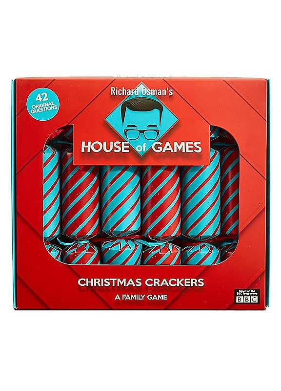 Play your very own episode of Richard Osman's House of Games in your Christmas Crackers! Written by the show's creators, turn Christmas into a battle of wits and laughs for all. With challenges like Rhyme Time, Distinctly Average and Singonyms, it's the ultimate showdown- who will be crowned the Christmas Special Champion?How it worksEach player acts as a host for the House of Games quiz round in their cracker. Take turns as the host reading questions aloud while everyone 'buzzes in' to give the correct answer for a point. The player with the most points at the end of a round wins the prize tokenAfter all rounds are complete and prize tokens awarded, it's time for everyone's favourite - Answer Smash!The player with the most points after all 7 rounds wins the coveted House of Games Trophy and is crowned the Christmas Special Champion.Content:6 Crackers - in each a hat, snap, joke, and full round of questions6 Answer Smash Questions1 House of Games TrophyFull Instructions6+ Players30+ MinutesPlastic free & recyclableDimensions approx. 32 x 32 x 5.5 cm