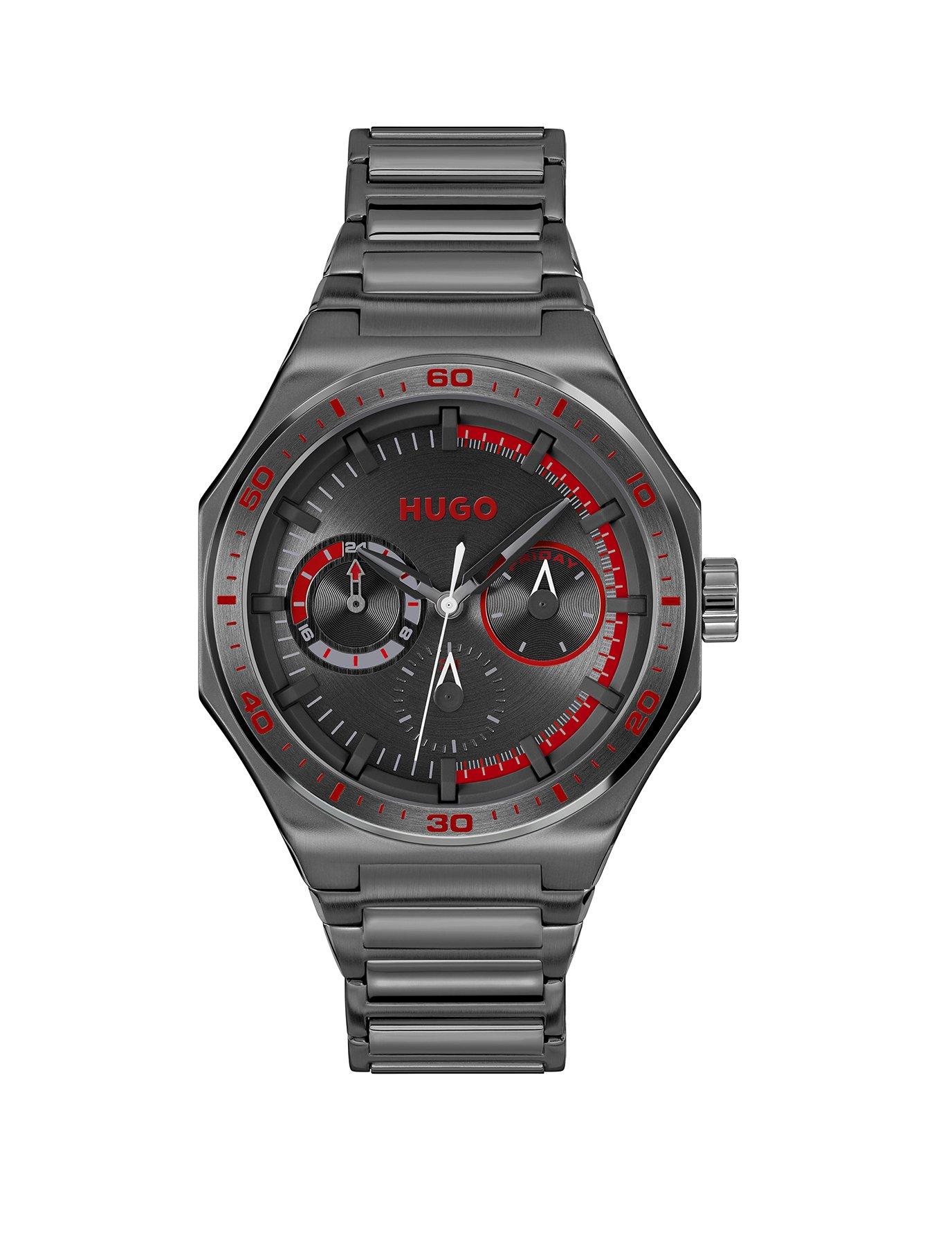 HUGO #Grail Sport Men's Watch Black HUGO gents multifunction watch from the #GRAIL SPORT MULTI family. Featuring a 44mm stainless steel case, blue dial, stainless steel bracelet. Water resistant to 5 ATM. 24Hr Display: N Case Diameter (in cm): 4.4 Case height (in cm): 1.1 Case Length (in cm): 4.4 Case Shape: Round Case Width (in cm): 4.4 Fastening Type: Bracelet Glass: Mineral Movement: JapaneseQuartz(battery) Strap Material: Stainless Steel Water Resistant: Y