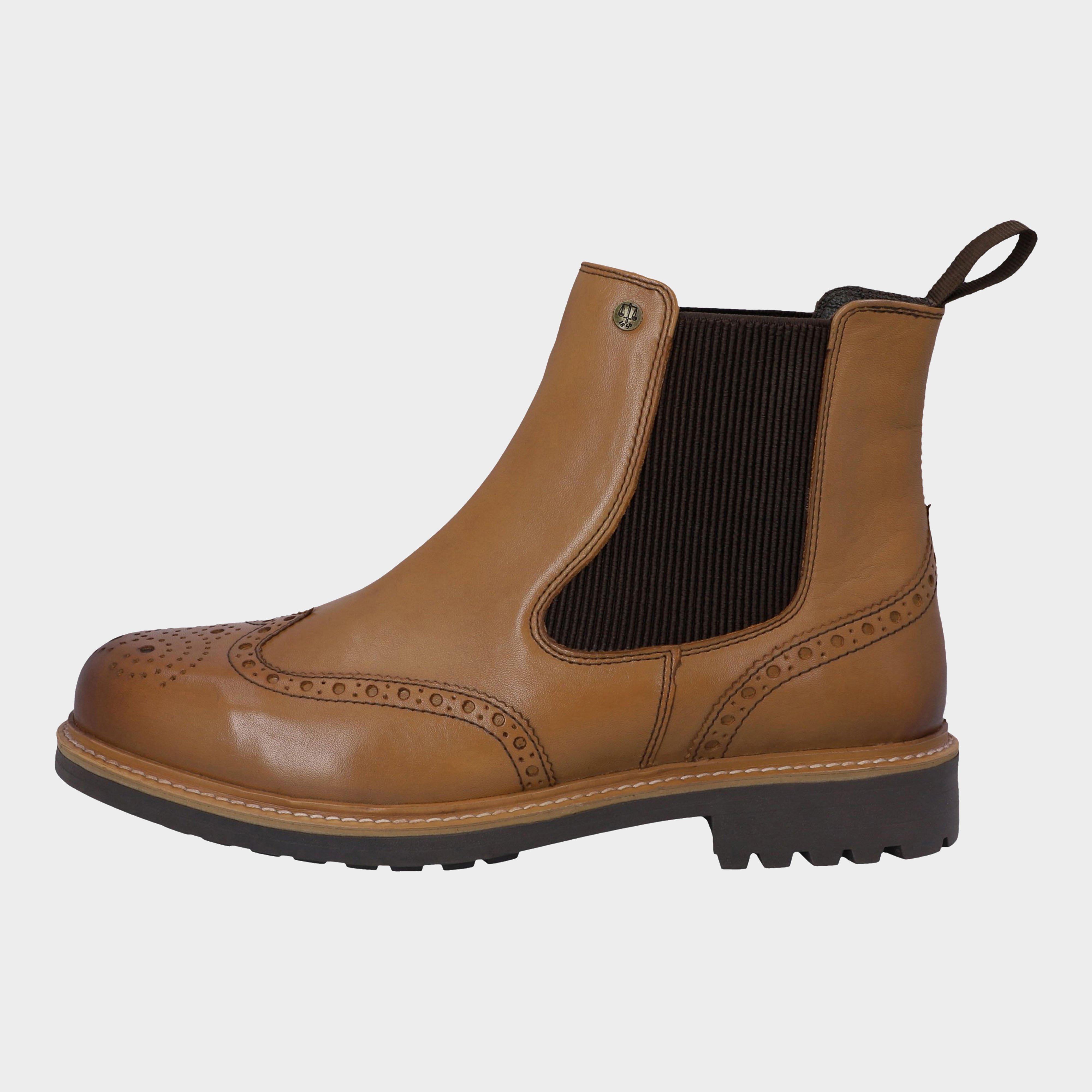 Joining our Country Range, the Cawdor Brogue Dealer Boot is a great all-terrain country style! Combining premium leathers, a fashionable wing-tip brogue and high-grip TPU rubber soles with mud releasing tread pattern to offer great grip and style.This stylishly crafted men's brogue dealer boot features a premium full grain leather upper with a timeless traditional wing-tip brogue toeMoisture-wicking Hunter tartan textile lining combined with goat leather trimSeven ankle high eyelet lace system featuring a trademark Hunter red top eyeletBeneath the foot is a cleated high-grip TPR Rubber sole which features deep tread to ensure mud release with every stepFinished with a rear pull loop combined with sleek elasticated gussets for effortless donning_