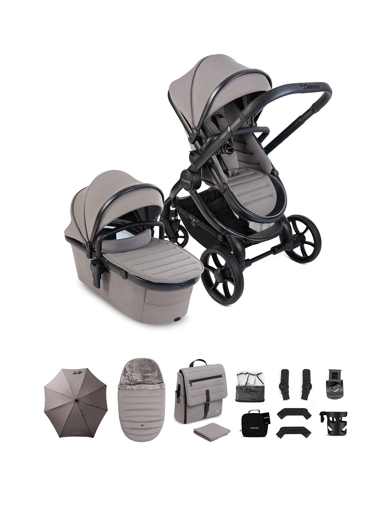 iCandy Peach 8 Complete Bundle - Porcini The iCandy Peach 8 Complete Bundle is a beautifully engineered, luxury pushchair solution from birth, combining iCandys latest innovation with effortless everyday functionality, tailored to fit perfectly around modern family life. Building on the legacy of the iconic Peach range, the Peach 8 introduces refined styling, enhanced comfort and future-ready features, while retaining the elegance, quality and performance parents trust. Suitable from birth up to 25kg, it is a beautifully balanced tandem pushchair on a single footprint, converting smoothly from single to double or twin without compromising manoeuvrability. The spacious, collapsible carrycot has been updated to deliver significantly increased airflow and is approved by The Lullaby Trust for permanent overnight sleeping, including when used with the compatible iCandy MiStand. Enhanced suspension, an extended canopy, ergonomic release system, flip-flop friendly brake and integrated Ride-on Board ensure a smooth, effortless ride on every journey. The Peach 8 Complete Bundle delivers cutting-edge design, intelligent functionality and luxury comfort. Including everything you need for a coordinated outing: Raincover, Screen, Elevator Adaptors, Car Seat Adaptors, Footmuff & Liner, Changing Bag, Parasol, Cup Holder and Clamp. Together, they provide a beautifully styled, luxury solution from newborn to toddler, ensuring every family journey is effortless, comfortable and perfectly tailored. Accessory List: Footmuff & Liner, Changing Bag, Parasol, Screen, Cupholder, Clamp, Raincover, Car Seat Adaptors & El Depth: 75 CM Height: 105 CM Width: 61 CM Age Range: Birth to 4 years Chassis: Aluminium Closed Depth (in mm): 70 Compatable With Carry Cot: Y Compatable With Car Seat: Y Fold Type: Fold In Half Parent Facing: Y Removable Wheels: Y Wheel Type: 4 Wheel Single-to-double or twin pushchair on a single footprint Suitable from birth (with carrycot) up to 25kg (15kg on elevators) Collapsible carrycot for easier storage and transport Over double the carrycot airflow compared to Peach 7 (1,300cm² ventilation) Carrycot approved by The Lullaby Trust for permanent overnight sleeping Extended canopy coverage, ideal for nap times or sunny days Enhanced suspension for a smoother, more comfortable ride One-handed fold and one-handed seat recline Flip-flop friendly brake with colour indicator Integrated Ride-on Board for growing families